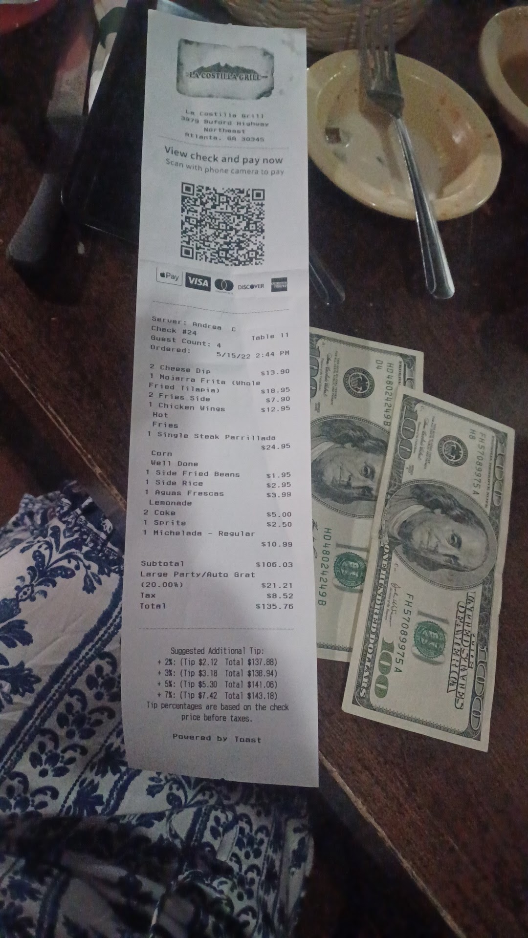 Read moreI dined with family recently and our experience was not pleasant, to start the attitude of our server was unfriendly, the times we inquired about drinks or if plate had sides she would say I don't know I'll ask never gave strait answer. The food eventhough we did enjoy part of the food. I order a t-bone medium rare which was serve on a hot sizzling plate which I didn't like for the reason being that by the time my steak had cold down it was over cooked which made it dry. The young man that was cleaning tables was careless that he hit one of my family members with the container that had dishes when I tried to get his attention and tell him to be more careful , I notice he had head phones on ,needless to say he would not care or show any concern if I was to bring it to his attention. The apparently server was eager to be done with her shift even when she was told , that we were not done . she immediately placed trash on one the plates with food, the proceeded and removed the trash and said oh I'm sorry. The gratuity its added to the ticket. I don't think after our experience was not the most pleasant. My first time...