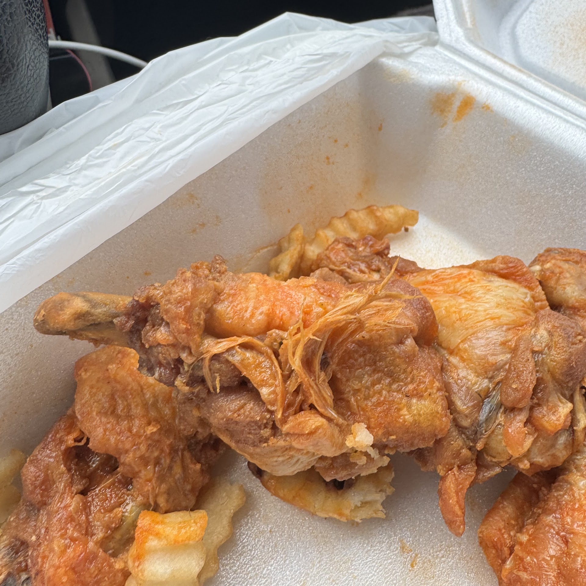 Read moreMy middle schooler went on a field trip and they ate lunch at Plaza Fiesta; the 12 year old boy child was left to his own devices. Sadly he chose this place and spent $20 on this mess. He ordered wings and fries. He brought the leftovers back with him therefore I was able to observe. He had leftovers because these wings either came from the largest chicken on the planet or they were altered in some way. He has now been instructed to not consume wings as big as his hand. I’m grateful he didn’t get food poisoning because the chicken was obviously unclean. There were clumps of unplucked and sauced feathers still on the wings. Yuck. He also stated that he and his classmates all got shortchanged. When they complained about it, they were brushed off. The change on the receipt says .39 but they were only giving out .20 to everyone. Nasty food and dishonesty. I will...