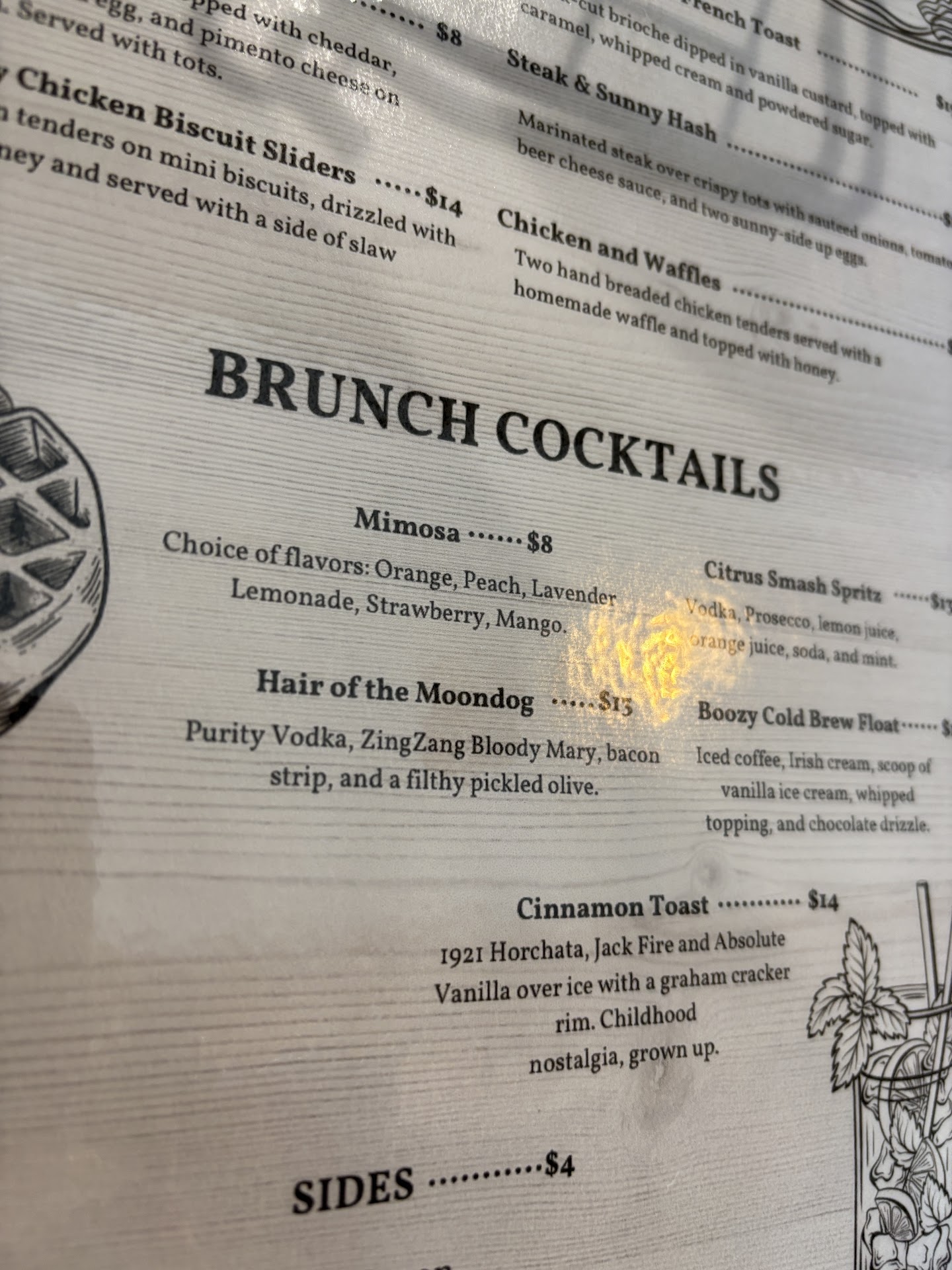 Their menus, the physical ones given to customers at the restaurant and the posted at their website say that the Brunch Burger costs $8. I invited a friend and that's what she ordered. When I paid, as they didn't give me a physical bill beforehand, I blind paid and then asked for the printed receipt. The receipt showed that they charge $18, not $8 for the burger. When I asked for the correction the server simply said that the price on the menu is a mistake and the correct price is $18.