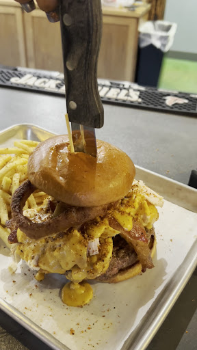 There's a passion in this place that brought me soaking and hungering through the darkness. They call it... The Werewolf. Cajun-seasoned beef, grilled chicken breast, a thick slab of roasted turkey, drizzled in house-made beer cheese and topped with bacon, onion rings, and skinned with brioche bun. I've never laid eyes upon a creature so horribly beautiful and decadent. It howled at me in the night — I couldn't believe how enormous a beast it was — I howled right back, face to face with a match made in heaven. I absolutely wolfed it down.