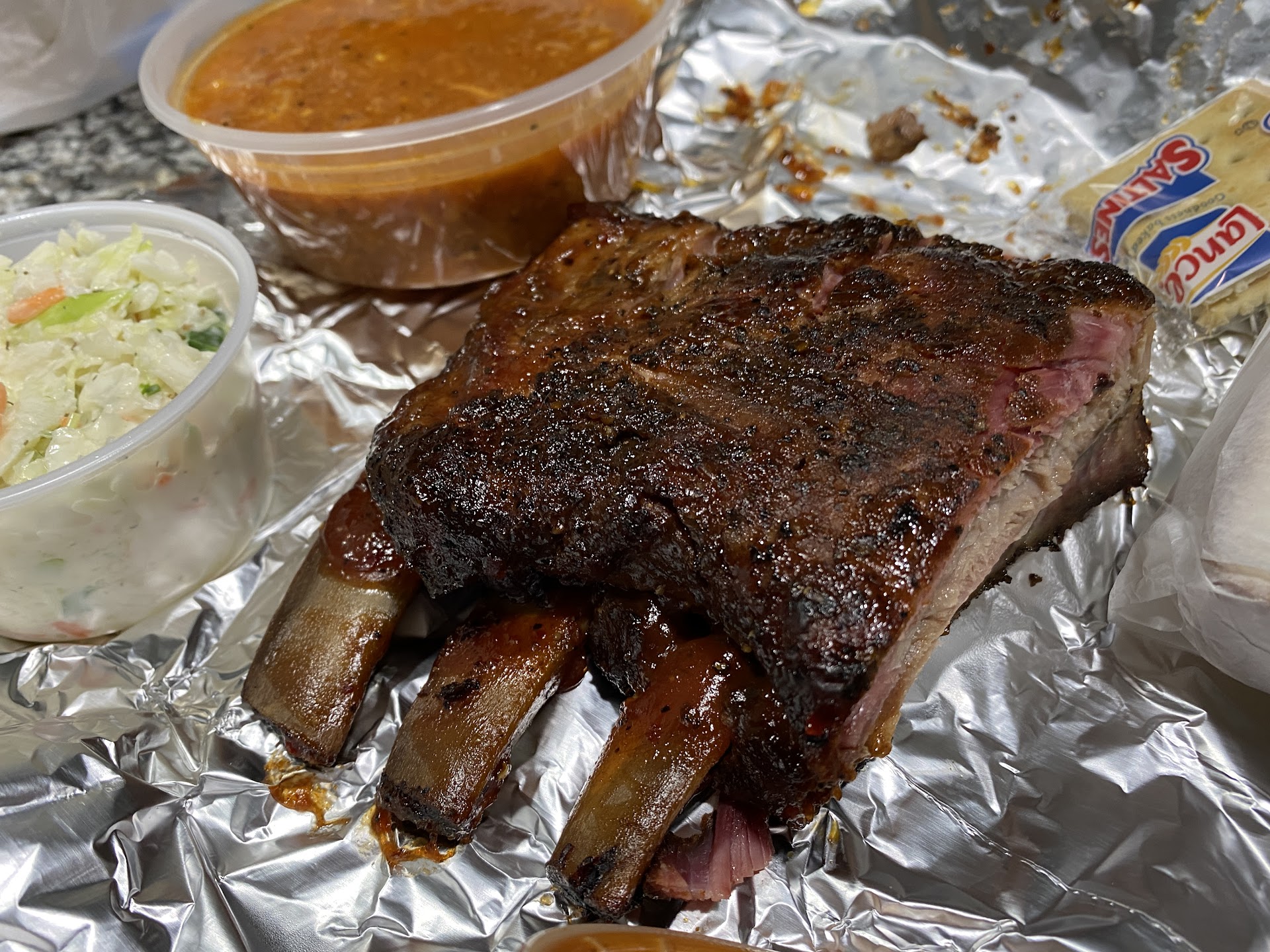 I am an out-of-towner, but love BBQ. I ordered my food to-go and just ended up eating in the car. The bag I got was kind of small and I was a bit curious if all the food I’d ordered was actually in the bag. I quickly learned all the food was in the bag, but just in portions I think are on the small side when you think BBQ. I’d share photos of the sides, but you can see the small plastic containers in other photos. I mean for $2.00, I’d still think we’d get more - like maybe the size the desserts are served in? The sides I had were the macaroni and cheese and the potato salad. Mac n cheese was greasy, but tasty. The potato salad is mustard-based and seemed to be missing something. The desserts I tried were the peach cobbler and banana pudding. The cobbler seems more like pie filling and gelatin-type. The crust wasn’t great in texture nor taste. The banana pudding was better - it seemed fresh and homemade. The wafers/cookies were soft, but not mushy. The flavor could be a bit better, but it’s good. Now we have sides done, let’s talk meat. I tried the pulled pork sandwich and ribs. Portion size for the sandwich is another point I want to make - it’s more like a slider. The pulled pork was tender and juicy. By itself, the pork average - definitely needed to put sauce on the pork. The ribs were falling apart. I could pull the bone clean out! I’m a dry rub guy, so the flavoring was ok. Again, needed to add sauce to get the tasty part. I’d prefer the meat to have good flavor without sauce. Overall, quality is average, taste is slightly above average, portions are below average, and the price is tolerable but seems to be lower because portions seem smaller. I’d try another place to see how this place compares to other BBQ in the area...