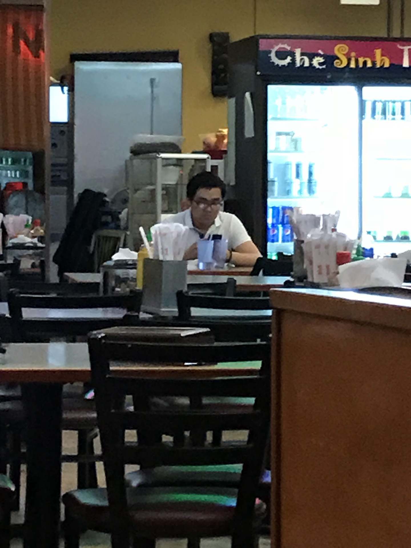 Update 2: things have been on a steady decline as of late with tonight (11/25/2018) leaving me wondering if I need to find a new Pho spot. We arrived and were seated immediately with only two other tables at the restaurant (already eating). We are pretty frequent customers so we knew what we wanted but the waiter disappeared once he put the menus down. 15 minutes later, no water, no orders placed, and no waiters in sight. We flag down the new waitress (very sweet and a bit shy) and we order 2 entrees and an appetizer with 2 sides of pho broth. We received our water and entrees after 12 more minutes with the rest of our food incomplete. I waved down the waitress from another table to ask if the rest of the food was coming and she said it was coming soon. We were half down with our entrees by the time the appetizer and broth arrived. The food was left and refills were requested. We never received that refill - instead, I spotted the water pitcher and brought it to the table and refilled our drinks at the end of our meal... I left it near by and ANOTHER TABLE grabbed it to do the same. Meanwhile, the server (who has been there for a while and usually has quite the attitude) was sitting in the dining room, ignoring everyone, and playing on his phone. He was so oblivious that I was able to take a photo and he still didnât look up (see below). While the food still had it usual yummy flavor, spending almost an hour to enjoy it was not worth it. Real bummer