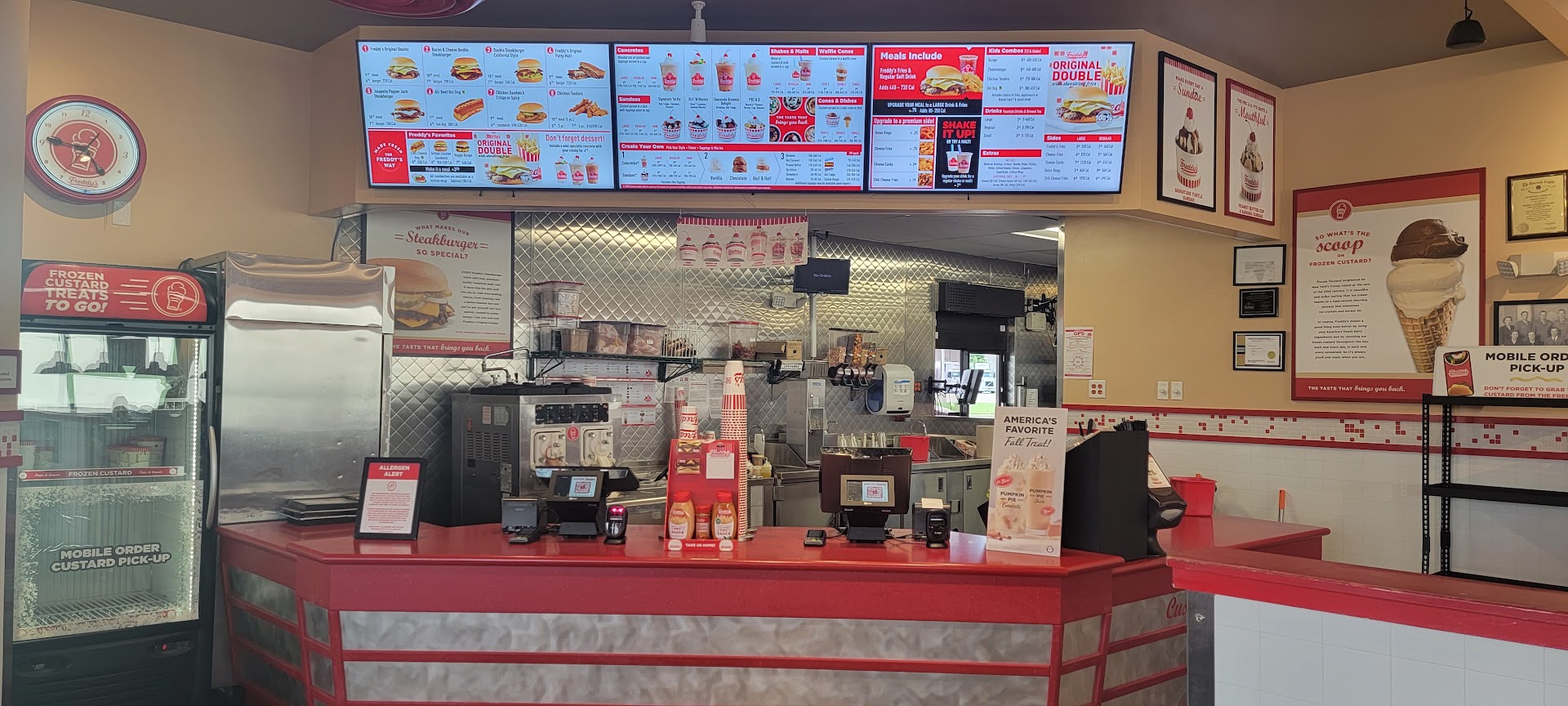 Got home, order was incorrect, missing items on burger (lettuce and tomato I added were missing), missing sauces for fries (that were added to order), and "large" $5.40 fries has been hit with shrink-flation. Easily what I'd say is a small at any other place that serves french fries. Maybe they got that wrong too, and gave me a small, no idea. The seasoning was still top notch, but I didn't have my fry sauces to go with it. The burger patties were dried out, and fairly small/thinner (compared to my previous experiences with Freddy's over the years). The custard was still quite good, but not even remotely close to the quality of something like Culver's.