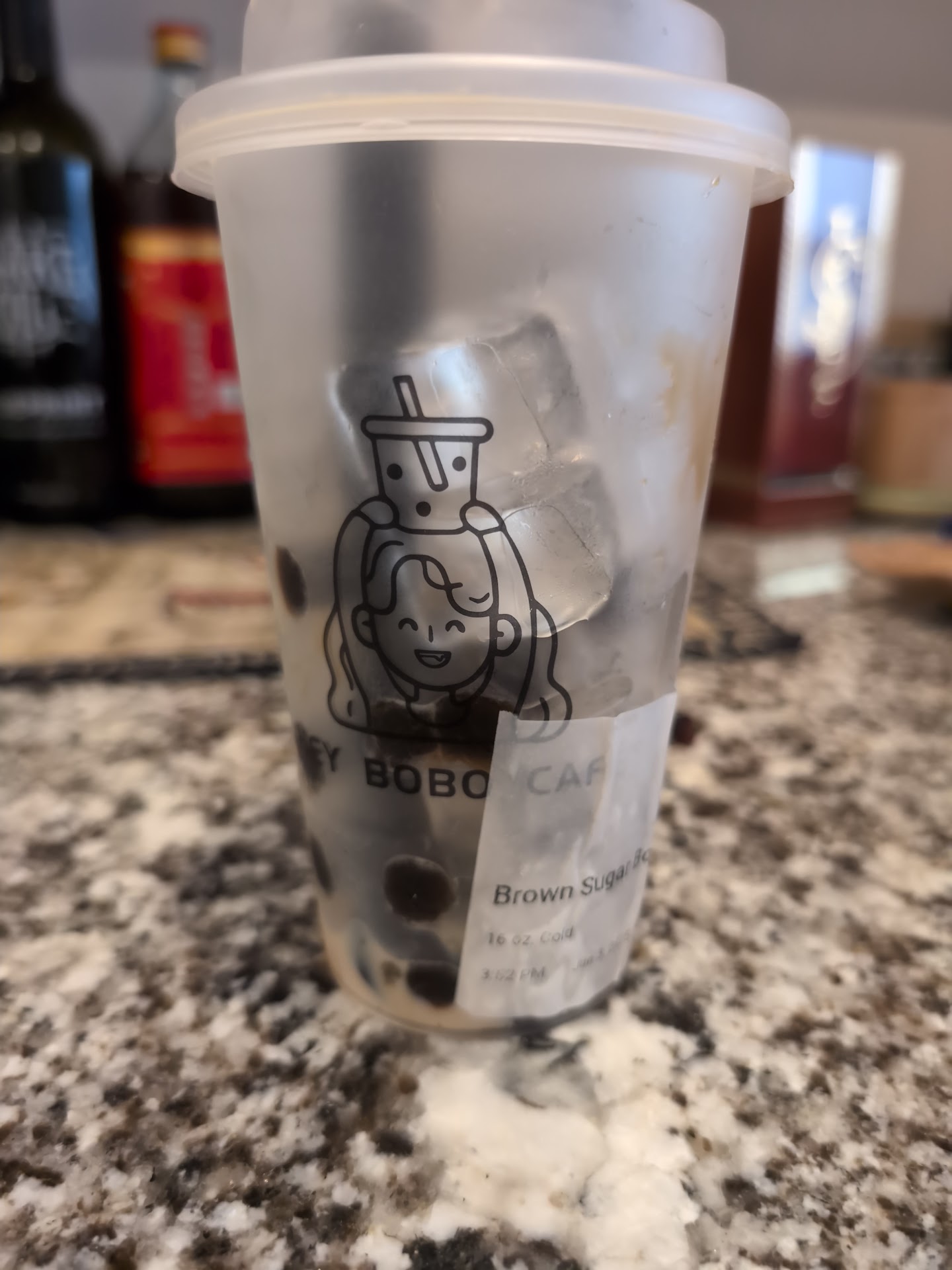 We ordered a hot brown sugar boba, large 20oz, ~$6. They gave us a 16oz and said that’s the large because it doesn’t contain ice.