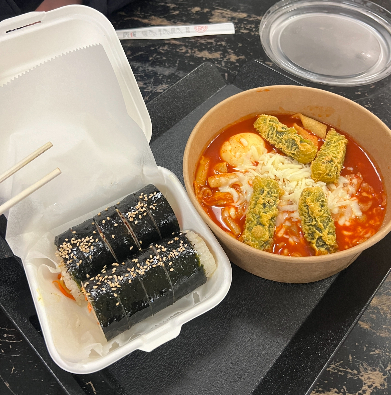 I ordered tteokbokki special, original kimbap, fishcake soup, and fried spiral donut (꽈배기). My favorite was Tteokbokki special , and I’d highly recommend it. It was AMAZING! It was just the right spicy level and it had a variety of toppings. It was super tasty and also fun to try different toppings!