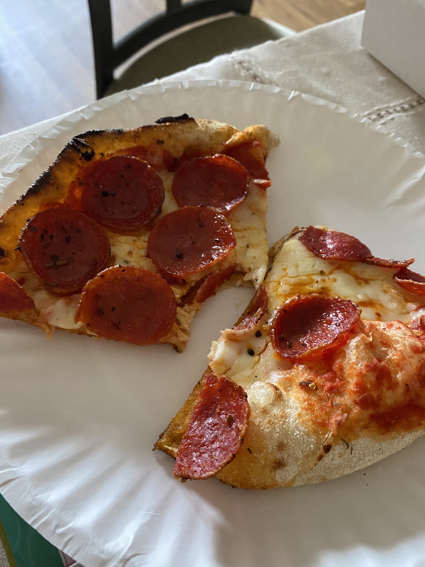 I got the regular pizza with pepperoni. The pizza was good but too small and the crust was too thin for my liking. Some of the pizza tasted burnt. Also the plastic bag felt moist even though the box the pizza came in was dry. And there was only one paper napkin which was oily so it wasn’t even clean. I rather get frozen pizza.