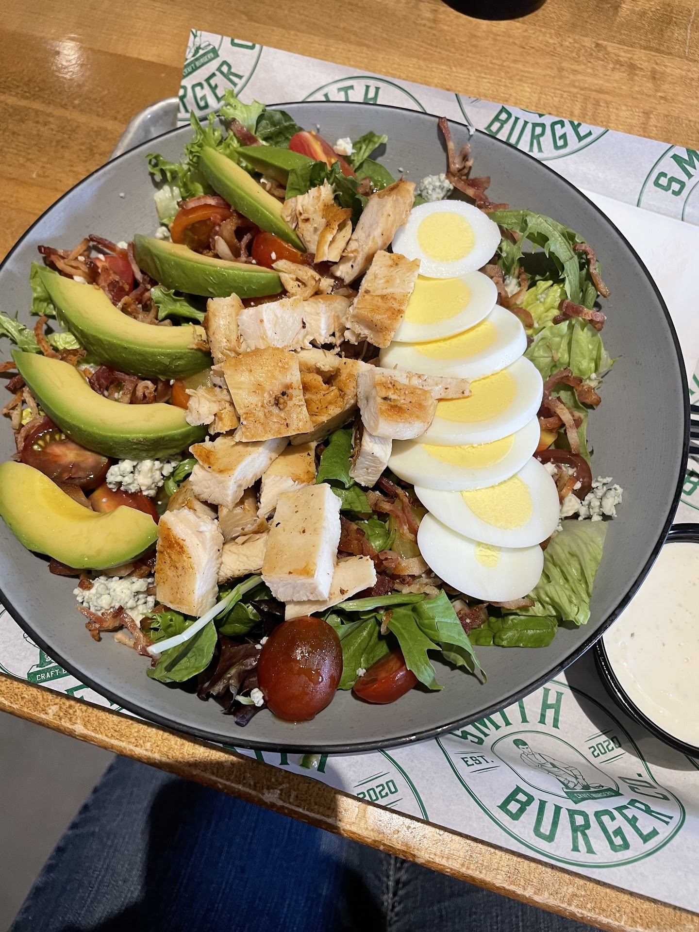 Read moreThis past Monday my partner and I decided to check out Smith Burger for the first time. Looking over the menu everything sounded so good! A lady was sitting next to where I was looking at the menu and she introduced herself as the owners mother. I asked her what she really loved to get as I couldn’t make my mind up, and she said she is on their salad kick currently. So I ordered the grilled chicken Cobb salad. My partner got the mushroom Swiss burger. We ordered and were given a pager that went off when our food was done. We both were shocked by how quickly our food was made! No joke, less than 10 min and it arrived! PERFECT for our lunch break! I was taken aback by seriously how beautiful my salad was presented. Not only did it look beautiful it tasted even better! It’s a very large salad and I couldn’t finish it all. It was so good! My partners Swiss and mushroom burgers was also very good. (He reluctantly let me have a single bite!LOL!). Because of how delicious and quick our lunch was I came back the very next day and ordered the all American and the cheese curds to go. I went at 1230pm-prime lunch hour and was amazed that I had my food ready to go in about 5 min! I got back to work within 10min of leaving for lunch and I shared half my burger and cheese curds with my coworker. We BOTH LOVED it and it filled us both up. I will absolutely be making Smith Burger Company a regular lunch spot! 10/10 recommend! Fast, delicious and...