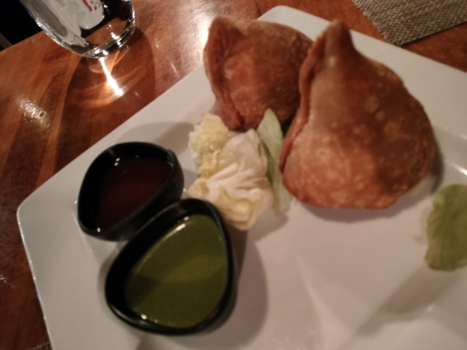 Samosa's and Chilli Planner in Starters. Well the Samosa's lacked salt in its masal but the dips(chutney's) green and tamarind were both good. The Chilli Paneer on the other hand was made directly from a shezwan sauce which was above par.