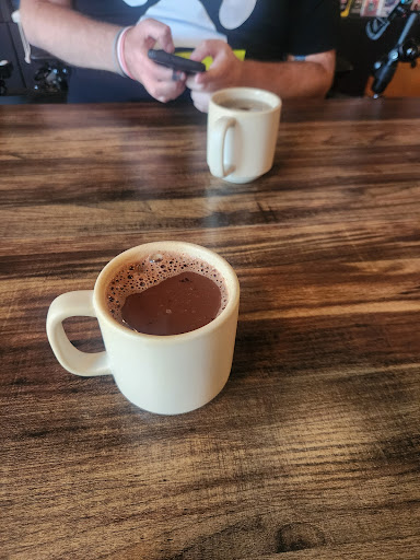 I got the faux-ca (hot cocoa + coffee) and my friend ordered the apple pie chai—both were delicious! While there’s no kitchen, they offer a nice selection of packaged snacks.