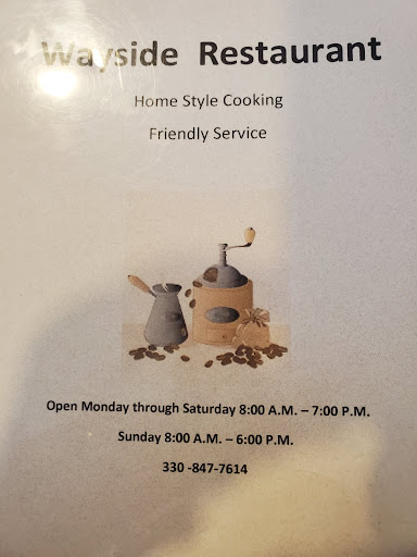 Our 1st experience and not a bad one. Very clean atmosphere. Excellent service, very good homemade food. I had one of the Thursday specials, " The Ruben Sandwich, Fries and added a house salad, the sandwich was large and filled. The thousand island was on the side. Have i had better, honestly yes, but this Ruben was in the top 5. The lettuce salad arrived in a small plastic dish with 1 cucumber slice a 1 grape tomato, ( which I cut in two ) lol. Price: $3.50, ouch. My wife ordered chopped steak, med well w/ Fries and house salad. It arrived hot and still juicy. She stated: very good. The menu variety is good and reasonable prices, except the gold salad. Wayside offers many daily specials to choose from and a senior and kids menus. I might add, finish your experience with a piece of the chefs homemade cheesecake. I give it a rating of 4. When we're in the area again. Sure we will make plans to patronize...