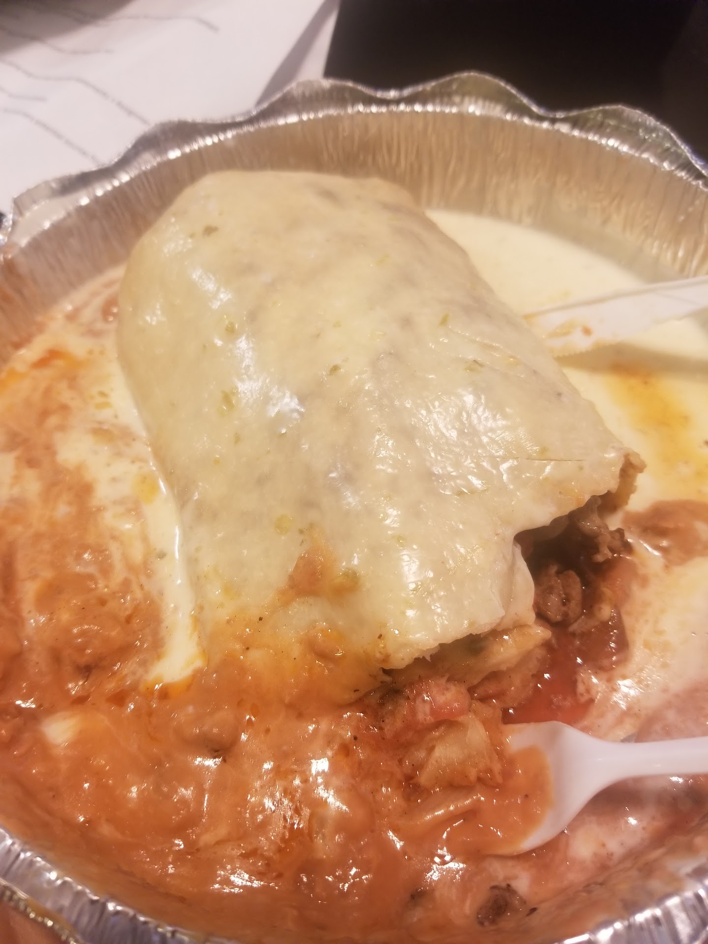 I'm not sure I would go as far as saying it was "okay," even for an Americanized version. This Americanized Mexican food all tasted the same with only slight texture differences, overloaded with tons of oily cheese and sauce, and mostly indistinguishable ingredients.