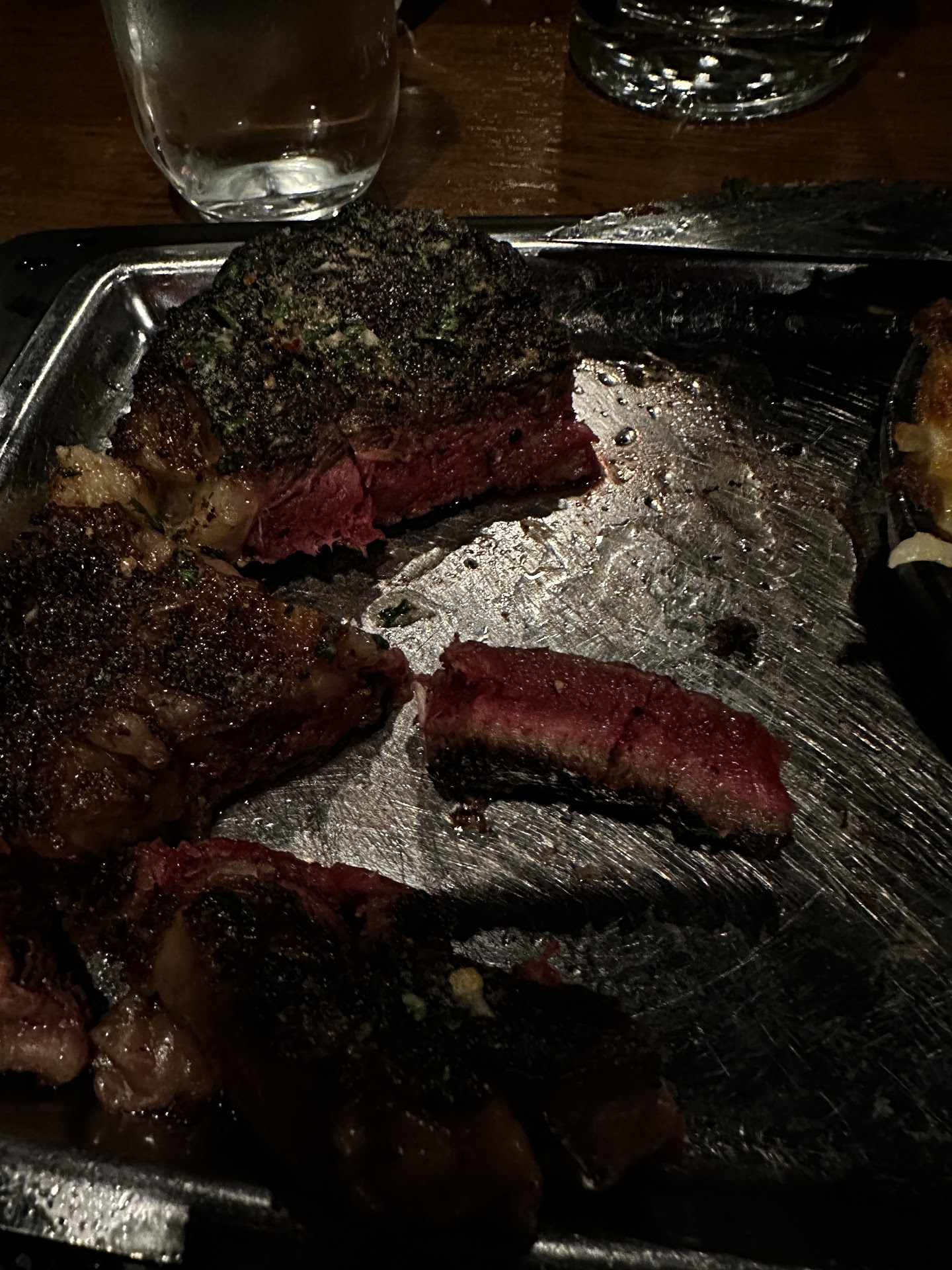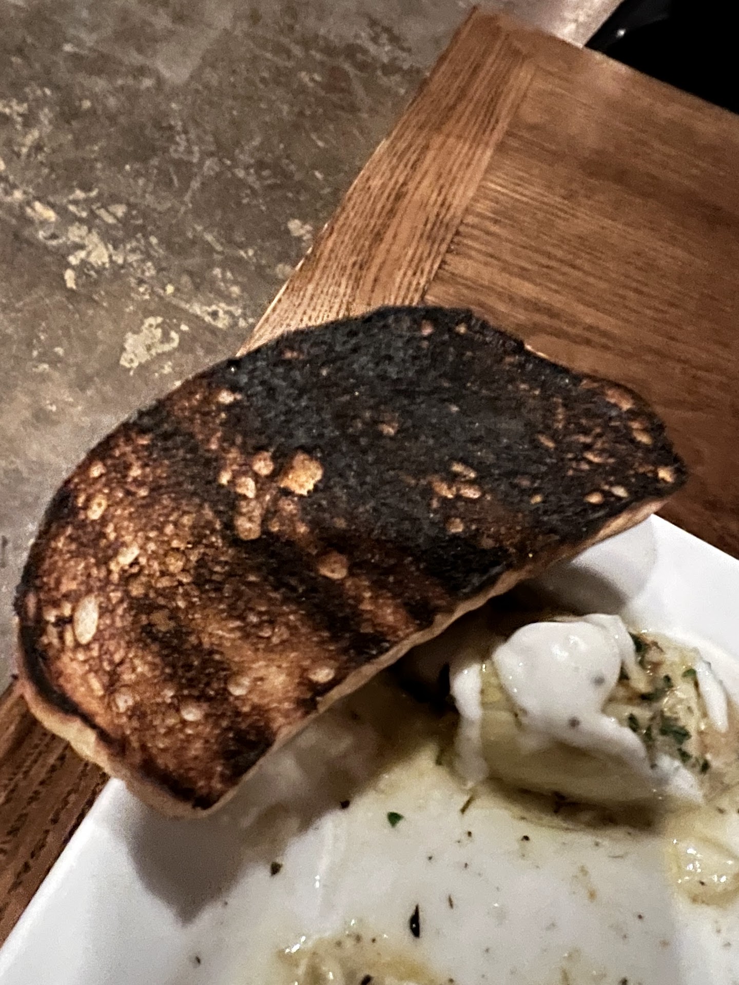 The bread that came with the olive oil was as light as air and perfectly spongy. The steak bites served with blue cheese were perfectly fired -- each had a medium center. The exterior seasoning was simple but scrumptious.