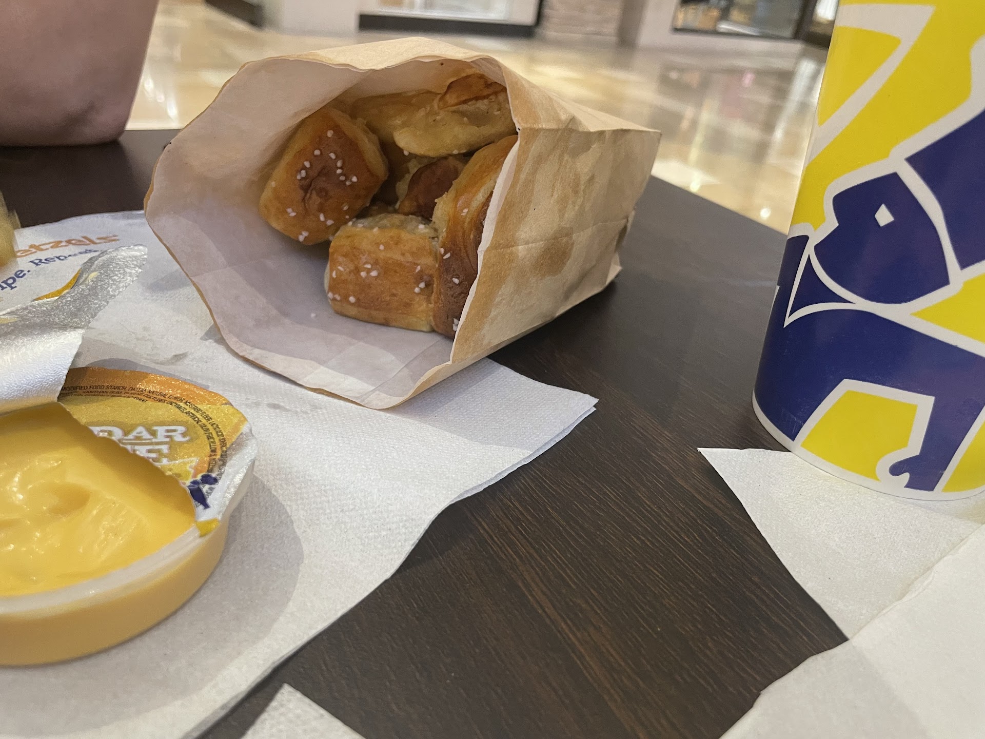 Read moreManager on shift wasn't the nicest. I placed an order for three pretzel cups at $21 & the other worker told us a 6 minute wait. We waited, gave them about 10 minutes & went back to get our pretzel. They handed us one cup & I told her I was waiting for 2 cups of pretzels. No big deal until the lady "manager" s basically called us a liar and said i only ordered 2 cups. She brought up the receipt and asked how much I spent and I told her I spent 21 plus my 20% tip I left which went up to 26ish with tax. The lady found my receipt and she didn't apologize for calling me basically a liar. She grabs a cup of cinnamon covered pretzels & tosses it into the grease & literally tries to wash the cinnamon off then hands it to me and says it's unsalted. I told her I didn't want a washed off cinnamon pretzel. Lol. She then calls her manager & tells him, "customer wanted a refund" I told her I didn't want a refund & just wanted my pretzel I order 20 minutes ago. Her manager she was speaking with then calls mall security and says he's gonna get me banned from the mall all bc I wanted a receipt stating she refunded my transaction. I told the security that I wanted a printed copy of the receipt stating she refunded the 26 into my account & there she goes and says " I can't give him a refund without my manager" ... This place is horrible. Idk how many other pretzels they just washed off in grease and claimed as fresh... The manager on shift was this lady.... She took a picture of me so I'll post one of her. Zero respect and the manager she called was disrespectful as well, he's the one who called security. The lady also made a comment "you're like 30 years old arguing over a pretzel đ and you're here with teenagers?" Lmao ... The audacity she had, we go to the mall with our family. I didn't know it was illegal to go to the mall with your family to shop. The pretzel was for my nephew who has an allergy to iodized salt... That's why we get one without salt. Never again will we be ordering there. I suggest everyone else to get your...
