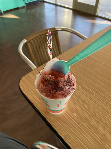 My favorite stop. This is near my doctors office. I've been at this location 3x so far. The 3rd time was a buy slow. I arrived at 1:45. My medium shaved ice wasn't done until 2:05. Usually, this never bothers me, but I had to get to my appointment. It seems like I had enough time. There was only a family of 4 and 1 other guy inside. But the kids here do work hard. I noticed the family of 4 ordered the most complex items. So understandable it took time. I feel bad. I did ask the guy to change his gloves. Sadly, I have a bad immune system. I take the risk eating out. That's on me. But the guy was understanding. I just saw him using the same gloves on the other others, and some had dairy. An antibiotics I'm on, I can't have any dairy. The people working here wouldn't know this. But I'm glad he was willing to change his gloves. I seriously seriously appreciate that. I love these shaved ice treats when I'm having a lupus fever. It helps a lot. I get sore throats easily (non contagious), and the shaved ice helped better than throat drops. Over all 5 stars. I don't drunk Star Bucks or di Fast food. So this $7 treat...