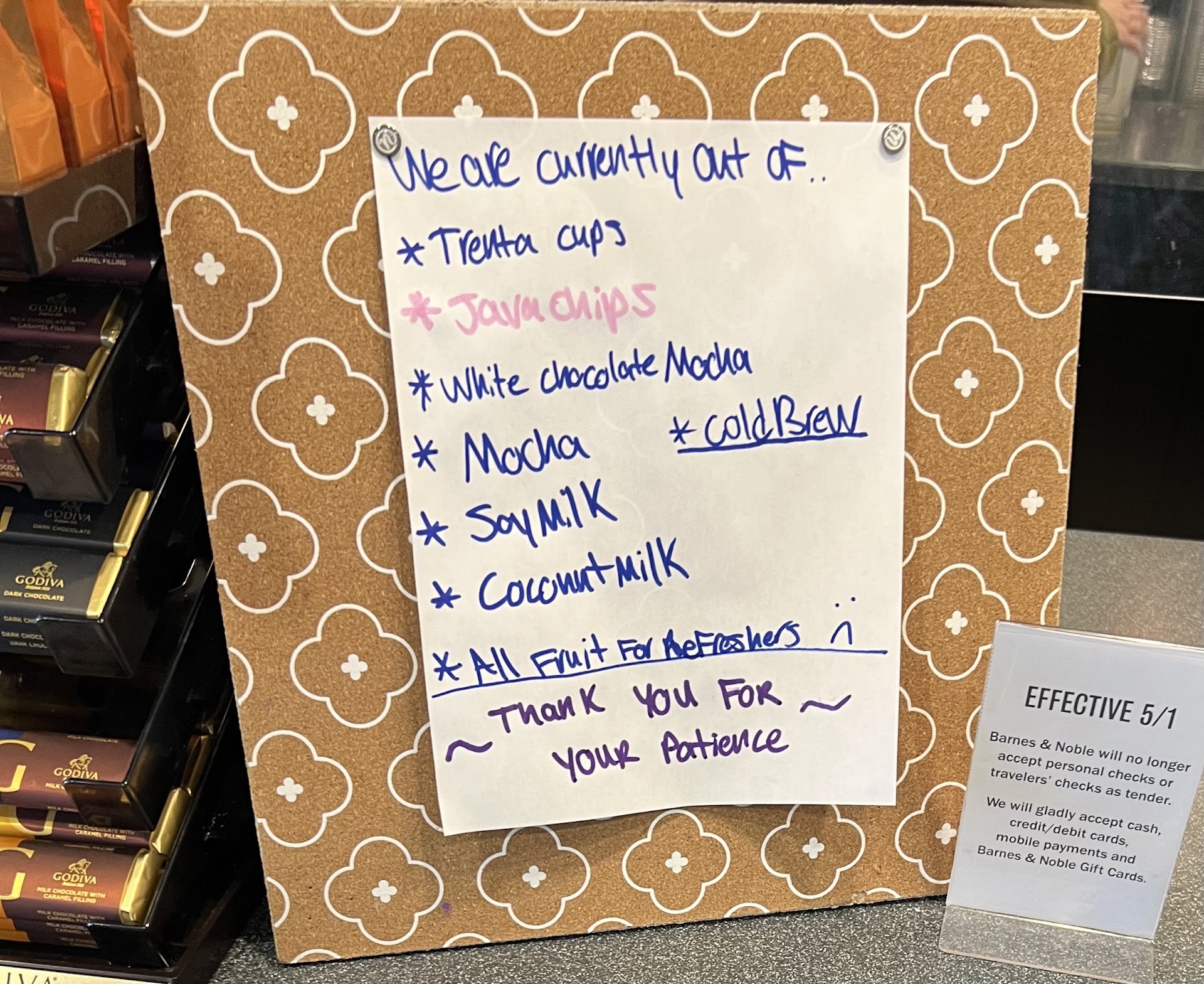Read moreI decided that rather than order a particular book on Amazon, I would buy local. My wife, my 4 year old granddaughter, and I struck out for this local B&N to find a book and possibly sip a coffee. With the book and coffee in hand we sat in the coffee shop to enjoy one simple pleasure. My wife bought a candle and set it on the table because she didn’t think it safe in the bag of books. We sat and sipped enjoying our time. One small important phone call later, we are set to quickly grab our things, our sleepy granddaughter and head out. It was closing time anyway, and we needed to address the situation of the phone call. Upon arriving at home my wife realized we forgot to grab the candle. She called the store and the person on the other end told her she didn’t have time to check the table. She told my wife to check the store in the morning. I drove over at opening time and no one had seen it. No one in the coffee shop, not behind the store register, nor customer service. Makes me feel like I should have gone with my first idea. I would have saved $8 on the book, and if had bought a candle and didn’t receive it, Amazon would have replaced or...