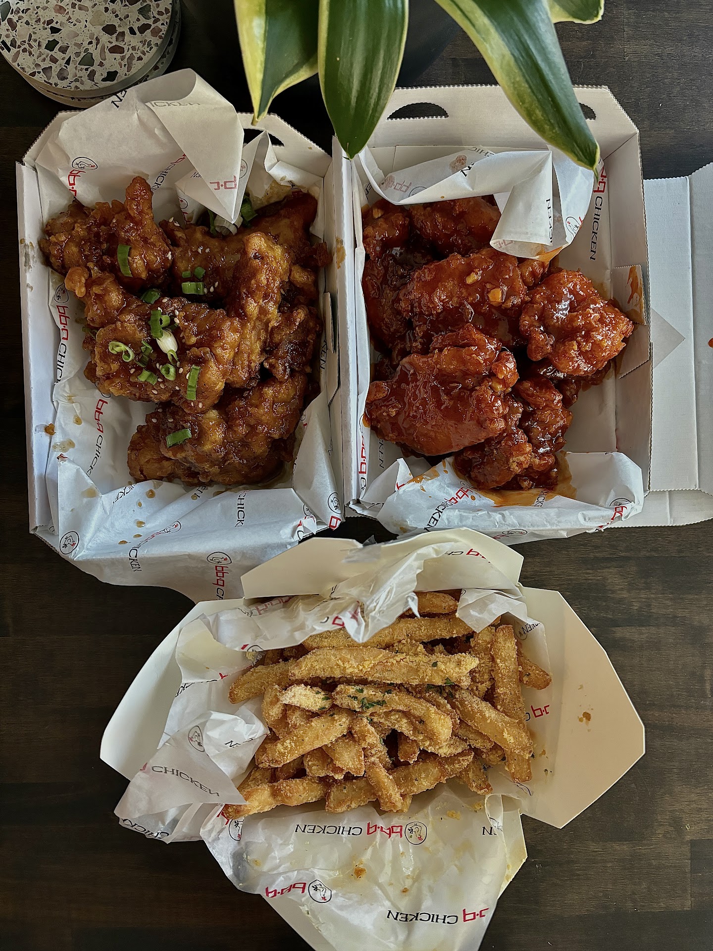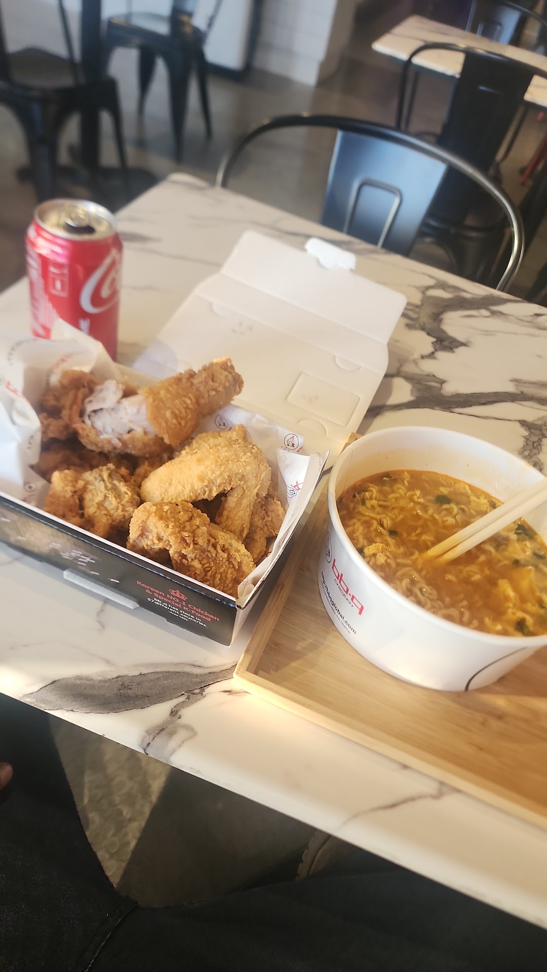 Overall, the chicken is worth trying out for the unique Korean flavored sauces. The place is very clean and spacious for the size they have to work with. Bathroom is clean and maintained. The chicken is served in a special designed to-go box that makes it easy to pack and go if you have leftovers. The staff is friendly, patient, and helpful. I will be a returning customer but might be ordering the spicy options to-go to enjoy at home without worrying about...