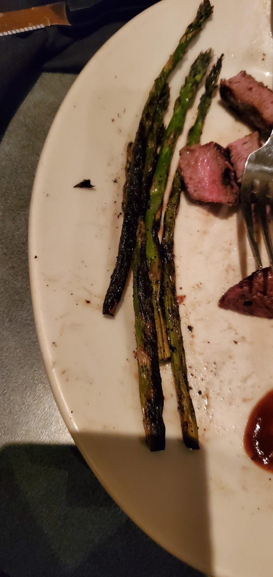 If you care, the food was decent. Regular steakhouse food, nothing spectacular. I had the 8 oz salmon, broccoli and garden salad. Hubby got ribeye with asparagus. Again, I'd take the food and the waitress's pleasant disposition. Hostess and...