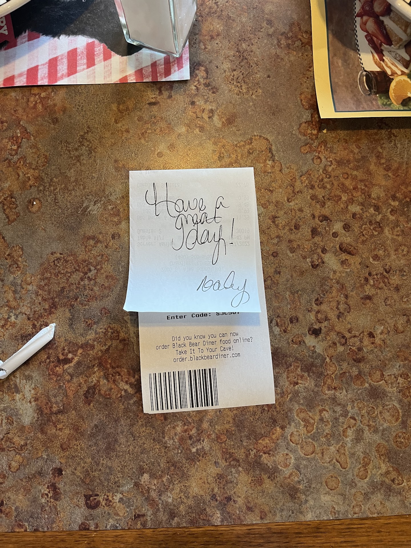 Read moreI love Black Bear Diners, but this one I am very disappointed with. I ordered a Rueben sandwich and my husband ordered a patty melt. His came on a toasted, not grilled, rye bread. Mine came on a toasted, not grilled, whole wheat bread. It took 20 minutes to get the meal and only one other couple was there. I showed the mistake to my wait person and she took it back to have to cook make another one. This time it came on rye, as it was supposed to be, but still not grilled. Only toasted. Very frustrating. Anyway, manager came to table and his first words were, "0 for 2" . I explained about the toasting vs grilling and he said it was grilled and what did I expect. I told him I've eaten at many different black bear restaurants and never had a Reuben this dry. Always a little buttery from the grill. He then asked, "do you want it greasy?" I also told him my husband's sandwich wasn't grilled and he said, "well, I didn't see his." So I asked him if he thought I was lying. He said no, but he didn't see my husbands sandwich. He said he would personally go back and make me reuben sandwich. When I finally got my sandwich, another 20 minutes, I had it to go. I wanted to pay for it, but he had already taken it off the bill. Not my intent! Anyway, his sandwich wasn't any better. Found out cook is 18 yr old. The wait staff was excellent! All very, very young. To franchise owners; get a new manager.... this one is very...