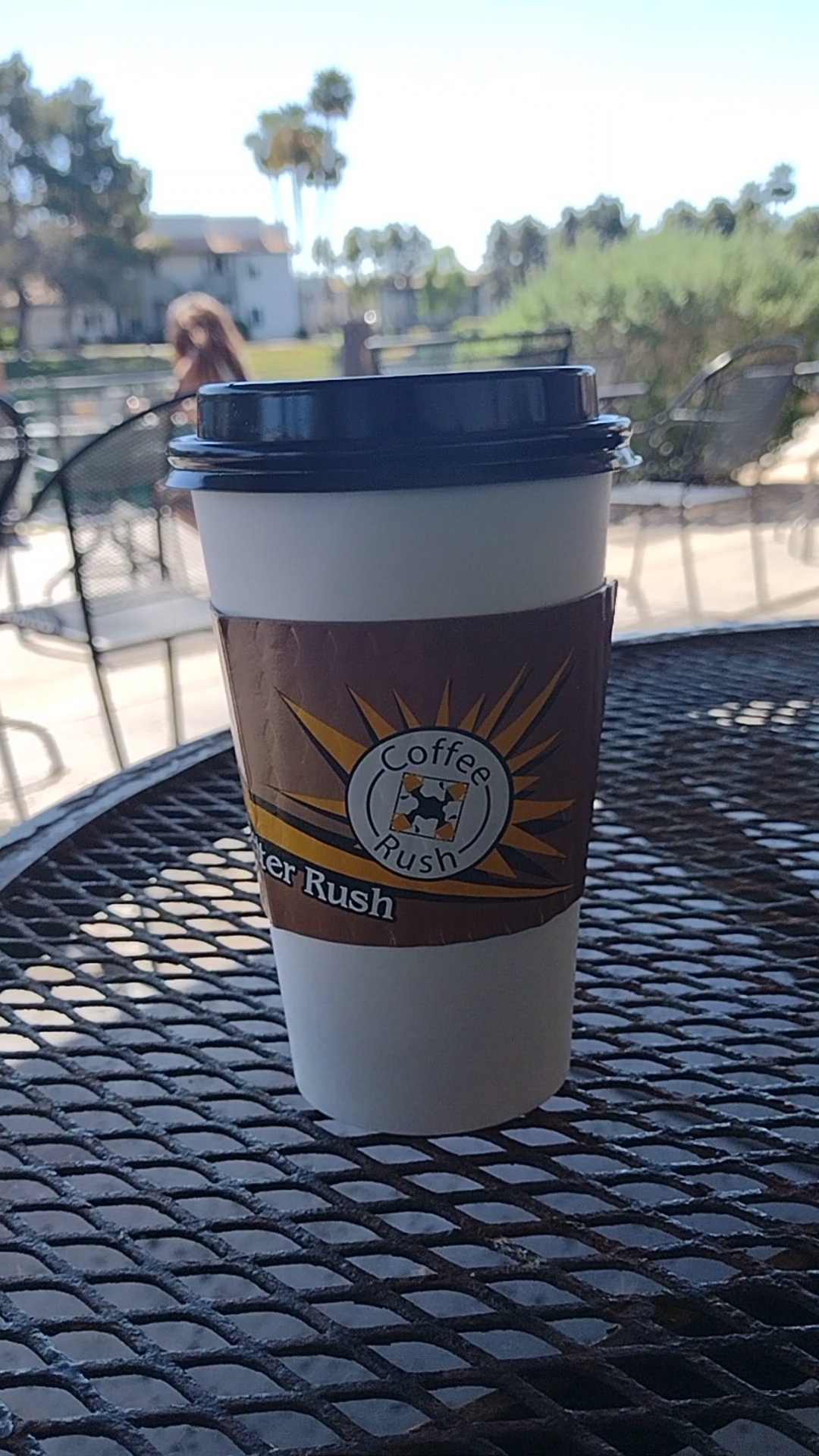 They are very rude to paying customers about having to go containers from a different establishment on the same strip.. I had gotten lunch at valley Luna or whatever it’s called and my two babies were restless so I walked along the path stumbling upon coffee rush.. I wanted to try a drink so I had my husband come back with me when he finished eating and we walked back over.. him and my mother in law kept pushing the kids in the stroller but had set down their two to go cups and my sons to go container and I had a metal water bottle they had left on the table as well.. my husband said the lady made eye contact with him as he set it down.. but she didn’t say anything and he assumed it was fine since we were paying customers and he was just setting it there while walking our kids around on the path.. I came back out with my coffee which was a large iced black and white mocha.. and I didn’t see my husband, mil or kids so I sat down and waited and just tried to enjoy my few minutes to myself with my coffee (which wasn’t great btw) without my kids.. next thing I know a barista comes up to me and tells me I can’t sit at the table with the outside food or drinks.. and was like sorry you just can’t I’m sorry we can’t have them so sorry and I’m like looking at her like girl how would I be able to carry all this and she just kept being like I’m sorry.. it’s not like I was eating at the table or like not a paying customer it’s like I literally enjoyed a meal somewhere else on the same strip.. walked by them wanted to try them and while waiting for me inside (the other barista had me sign up for a card which I was excited about before I tried coffee and experienced rude service) but so my husband set their stuff down while waiting for me to come back with my coffee because he was walking back and forth with the kids.. but this lady really like expected me to get up and carry 3 cups and a metal water bottle and a to go box and my phone.. they just aren’t kid friendly at all.. it’s not like we were trying to stay and eat or even drink my coffee leisurely I was just waiting for them to return so they could help me carry the stuff back but I didn’t know what to do after she told me I needed to get off the patio with my food and I felt so uncomfortable so I started calling and texting my husband and mil like a crazy person and I just moved tables and left their stuff on the table until they finally made it back with the kids because obviously she didn’t have a problem when no one was at the table she could have thrown it away but after I spent practically $10 (I left a $1 tip when he made my coffee) she wants to confront me.. idk it made me so uncomfortable and really ruined my experience so I will never be back and honestly wish I would have just gotten a refund because the coffee wasn’t good I just put it in the fridge and figured maybe tomorrow I could doctor it up.. but yeah idk it just was very uncomfortable and I was literally just waiting for my husband to return because I couldn’t carry all our stuff myself like we weren’t planning on staying there I had just asked him to go back that way so I could try their coffee.. I felt it was really a bad way to treat a first time customer but really any customer.. but I’m not sure if their regulars are used to this and it’s just like a known thing.. I can understand how it could be a problem if people want to just sit down and eat at their patio without making a purchase but it seems like they are a little to crazy with their rules.. at least in my opinion and honestly if she would have just told my husband he couldn’t do that before I paid then I would have just left without buying coffee but it was oddly convenient for her to wait until I had already paid to then...