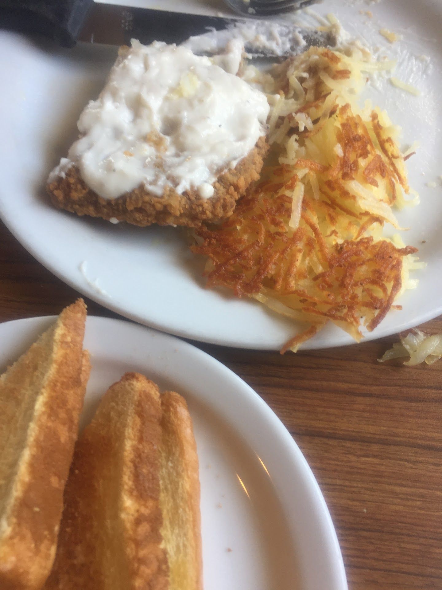 Read moreThere wasnât a long wait. Very clean. We were one of only three families in the dining area. Server was very pleasant. It took longer than expected for our food to arrive. The server brought our meals and disappeared until we were almost finished. When she asked if our food was good she was walking away before I could answer. A customer had asked for a to-go box and I used the opportunity to get her attention, needing to let her know that the salmon tasted dried up. It tasted stale and freezer burnt. The broccoli side was perfectly cooked, but cold. The small side of mashed potatoes and gravy were INCREDIBLE. Iâd give them a perfect score! I strongly urge you to AVOID THE SALMON! My two young guest had the Chicken Fried Steak with eggs and hash browns. They were very pleased. I tasted it and agree that it was exceptional. At the register I shared my concerns about the salmon with the manager. He said, âIâm sorry about that. Our salmon hasnât been very good lately.â Hmmmm while I appreciate the validation and honesty, Iâm wondering why they continue serving it if they âknowâ. My guest had coffee and asked for a to-go cup. He had to ask them twice more before someone remembered. Maybe the staff were having a difficult day. As for the salmon, I should have insisted that the salmon be replaced with something else, so Iâm partly to blame for my unhappiness. Iâm still trying to find my voice and donât like having to get confrontational. Iâll do it through reviews until I feel less awkward about it. Food has to be really bad for me to say...