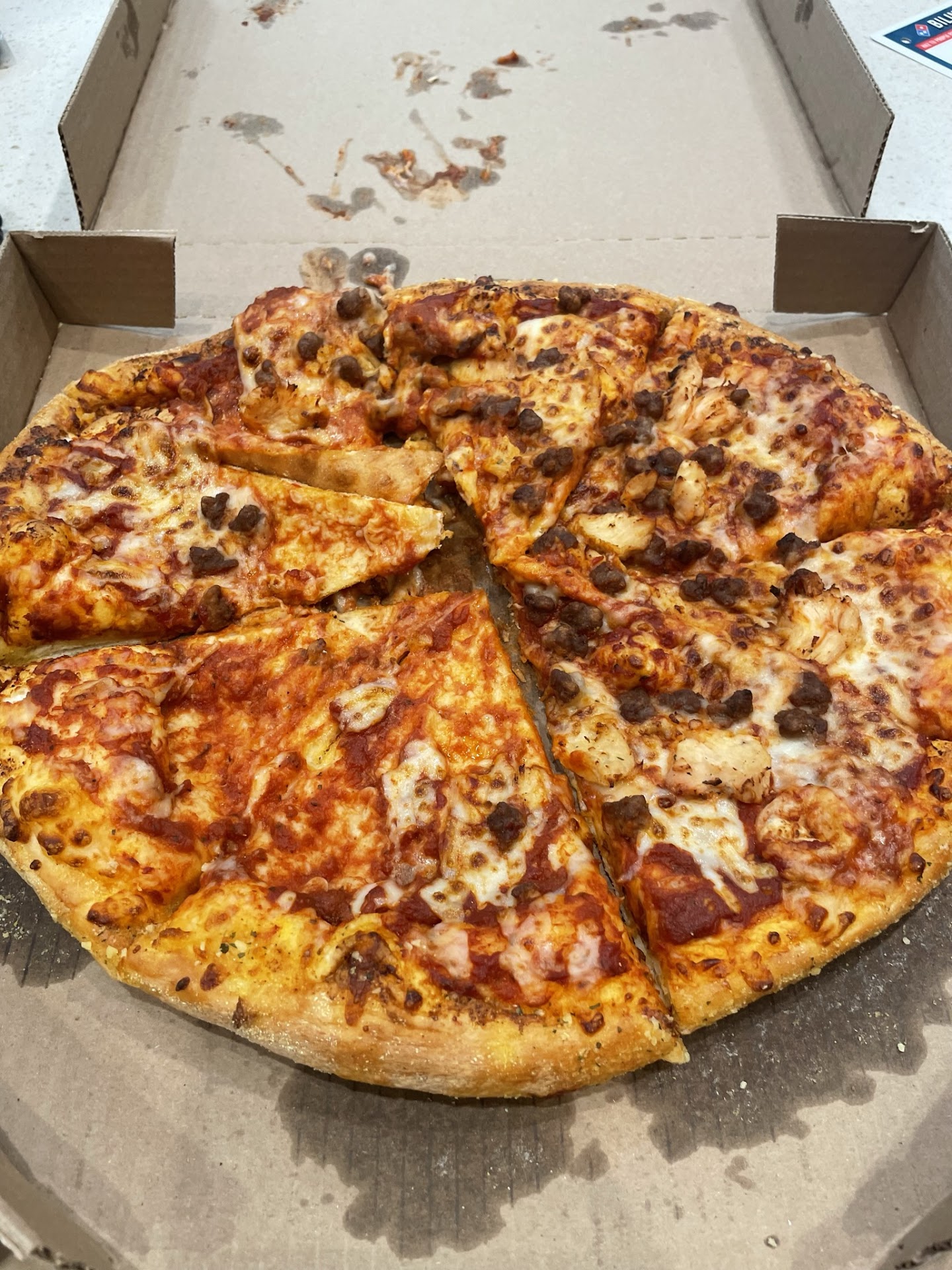 Dominos fixed my previously mostly burnt pizza by making this one mostly crust.