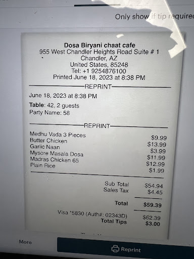 I catered from this restaurant for my son's grad party. Here is my frank and honest review for my catering experience. Service: the young and smart lady who runs the place and catering was totally awesome. I had gone to her restaurant with the full idea of just getting a quote to eliminate. However I was very impressed by the genuine interest she took in asking us about our vision and then also immediately getting us samples to taste. My husband wanted mocktails and while she was honest she hadn't done those before she got the basic idea and then implemented it beautifully. Shr also suggested items that will work for the crowd and took the trouble to explain why, and provided food samples to back her suggestion, something my son appreciated very much. The menu she helped us plan was sumptuous and for a very reasonable price. We asked her if she had any contacts for live entertainment and she coordinated with dj megdeep from LA, arranged for him to travel over to phoenix found decently priced tickets and made sure it works out for us. Megdeep made the evening for everybody and that itself needs a standalone review. The lady also arranged for dedicated grad decoration at the venue and I have to say that was such a blessing. She felt like family and not a caterer. Her enthusiasm and willingness to go extra miles (note not mile but miles) made the grad party easy, efficient and a success for us. Because of her help with food, entertainment and decor the whole process was super easy. The food presentation was classy, she had good quality steel serving items. The desserts, and mocktails were served in good quality individual glasses and bowls and looked really nice in pictures. Her mocktails were a hit since she let her creativity really play out here. As a person who loves cooking she made sure food was tasty, good looking and fun. Food: the food tastes good, is fresh and is of good quality. She didn't (in catering) and doesn't ( in her restaurant) palm off old food. Everything is well made and has a level of creativity. The menus straddle a good measure between traditional Indian and modern fusion. I have to say she gave us idea to add khubani ka meetha and actually made a sample herself for us to try. Her enthusiasm and happiness is very Infectious. The several pounds I gained on her shahi-toast-to-die-for will stand testimonial to food quality. Her pani puri stand was great as was rest of the food (biryani, pulao, paneer, naan) etc. All this and more is for a very reasonable and affordable price. She adds more value to the event than...