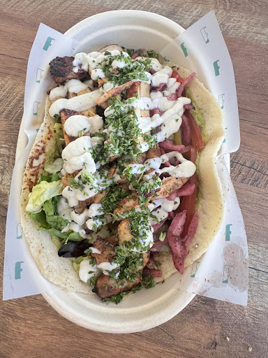 Read moreWe were at the target next door and remembered my friend talking about a Mediterranean restaurant around. We went on a Sunday around 1pm and it was empty. The place is aesthetically done and looks really grand for a quick lunch fix. The menu is super simple and very limited. We ordered chicken kebab which came with rice, falafel and a chicken pita wrap. The food was served in eco friendly containers which was a plus and had lids to take the left over. The food was presented well and was served at the table. The falafel was fresh and the hummus was good too! Loved the rice flavor in the chicken kebab but it was too dry for us and felt lacked the sauce! The wrap was decent. It was a regular meal nothing extraordinary in terms of the taste. It's a good fix at a decent pricing. They can do better with options, flavor and...