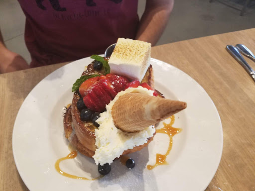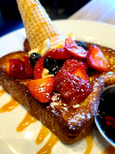 Read moreI woke up this morning hungry and I made up my mind I was going to try something new and different. So I placed my faith in my yelp account and I ended up for the first time at the Hash Kitchen. I have to say the vibe, the decor and layout are done very well. The music and the energy may not be for everyone but the balance of it, well they got it right. Think Vegas hip but with a very neighborhood spot feel to the staff right here in Arizona. Disco ball, DJ booth and bass thump at 720 am isn’t for all of those seeking breakfast but guess what, I wasn’t alone the place already had a steady crowd arriving and all seemed ready for the experience, and by 8 am capacity and the party was on. Now if you are a Bloody Mary fan or specialty cocktails with a breakfast twist this place is your Zion! The Build a Bloody Bar is literally the best I’ve seen hands down. As to the menu I had a hard time deciding between the banana fosters pancakes or the banana split brioche French toast. And the braised short ribs in three forms from burrito to Benedict well I was stuck, then I saw a few dishes get delivered and I end up with the French toast and the Bennie short ribs. Let’s start with the French toast, it arrived with fresh strawberries, blueberries and mascarpone cream flipped upside down inside an ice cream cone. It did not disappoint on any level and what’s pictured is the half order so beware. Now I’m not the Benedict fan in my family but I went out on a limb and was delightfully surprised by the delicious flavors of the Benedict over the hash browns and short ribs. Those flavors were balanced well. Now I didn’t eat much of the additional bowl of pappas, “that’s Spanish for potatoes..lol but they were adequate. For me a bit of an overload, for me I would have preferred that side be maybe a fruit or something else but hey the chef and staff know what they are doing so I enjoyed it and sat quietly observing. In the end my server and the entire staff seemed genuinely happy to be doing their thing and the ones I interacted with were cheerful and attentive. If you get a chance hit the Hash, worth every dollar and the time. Go early, go hung over...