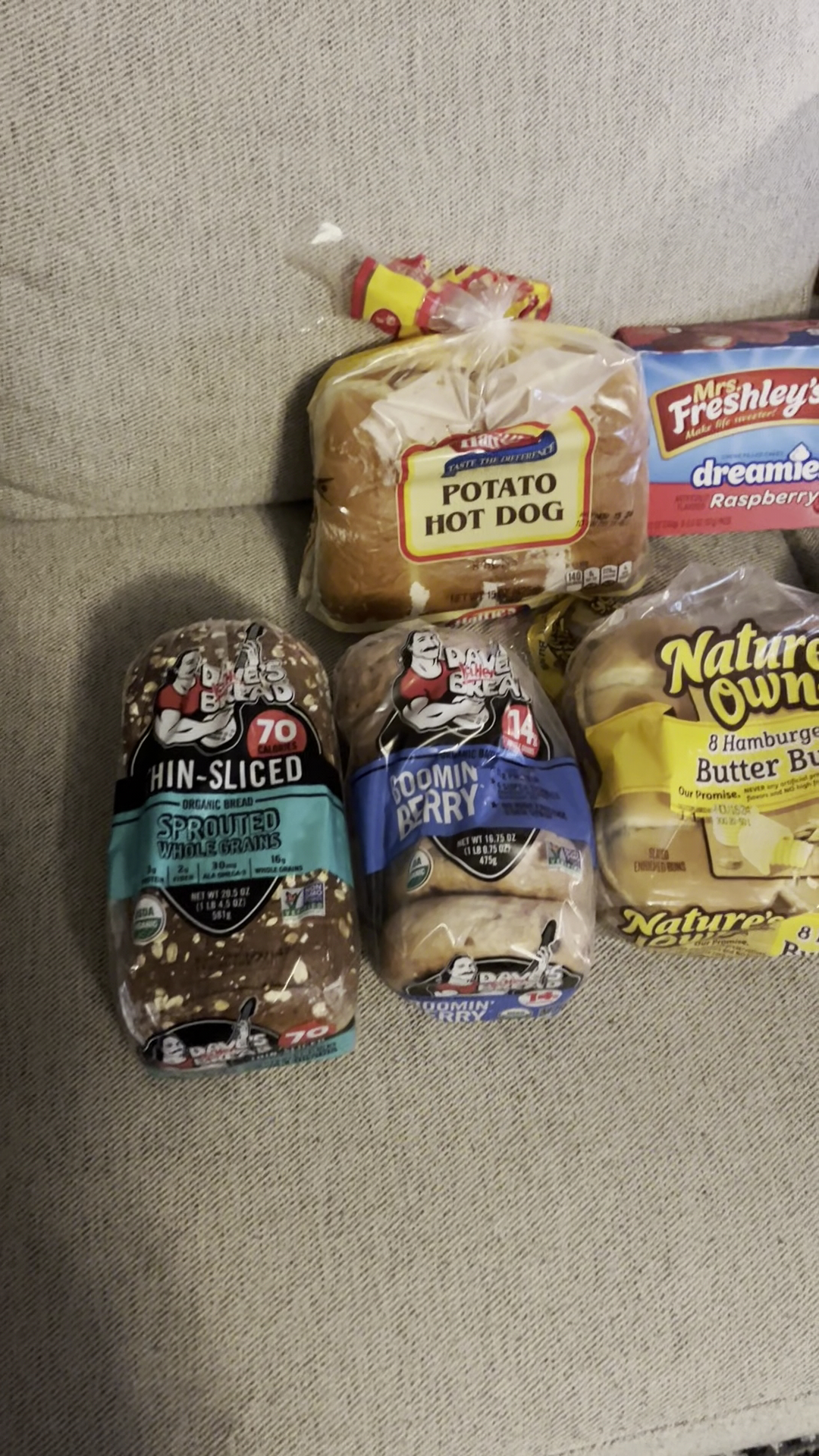 • 1 loaf of Dave’s Killer 21 Whole Grains and Seeds for the bread bin • 1 for the freezer • A pack of bagels for when I’m feeling wild 😜 Wish they sold cream cheese, but alas.