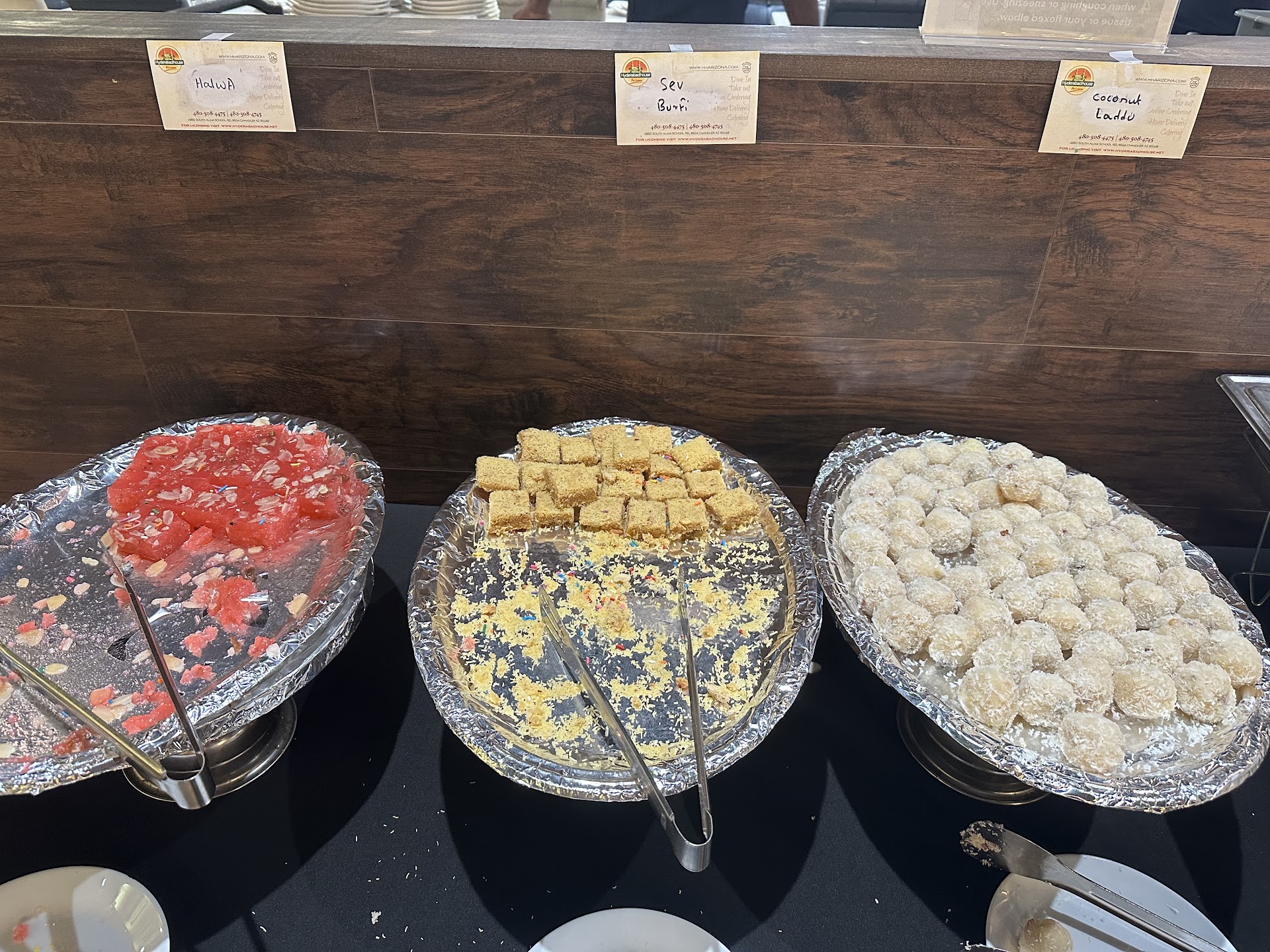 Their desserts shine. They had a delicious coconut panacotta that I would come back for. Along with that they had laddoos, sweet pongal, jelly, yummy cake, and sev barfi.