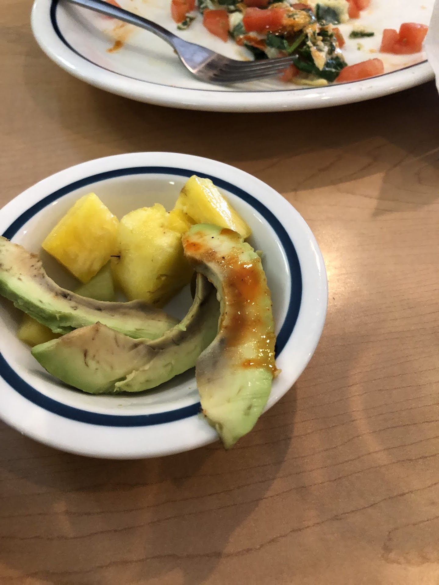 Read moreThis IHOP is not the first we have ever visited whether it is in our home state of AZ or other states that we have been to... However, the experience that we had this morning at this location will make us think twice about visiting another IHOP and this particular location is a forever NO. It took over 40 minutes from the time we placed our order for it to reach our table on a Monday morning on the 10 o'clock hour. My other half ordered sirloin tips and eggs and substituted the pancakes with plain crepes. He ordered the sirloin with no onions and ordered his eggs poached. The meat tasted of onions as if it was cooked with them and then picked out before serving, and some pieces of the meat were cooked and some pieces were raw. His poached eggs appeared to be poached, but as soon as he put his fork into it, it was like a hard boiled egg. The crepes tasted like they were made from just flour and water. My son had the french toast off the kids menu which came with scrambled eggs; the french toast was burnt on the bottom side and eggs were like rubber. I had the Cage-Free Egg White Veggie Omelette... the avocado that came on top was on the verge on being rotten as you can see from the pic. There was no cheese and it was pretty much half cooked spinach that hadn't been washed with a little bit of egg white from the couple bites that I took. None of us finished our meal. I am so happy the waitresses had time to spray and smell each others perfume as one of them was clearing the table behind us... I am sure my other half appreciated going into his office smelling of women's perfume. In conclusion, go to any other IHOP or another restaurant all together... It was the biggest waste of $40+ for the 3 of us to eat that we...
