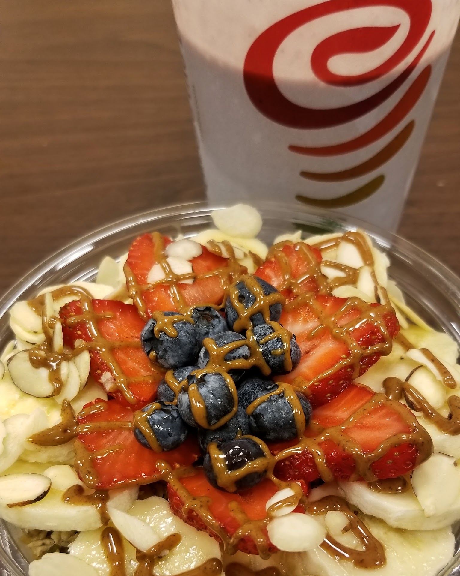 I don't often get drinks in malls but since it has been getting real hot lately, I decided to try some Jamba twice, yesterday and today. I saw how busy it was when I went to get myself a drink, I didn't mind the wait but seeing that there was one person working during the rush hour, I was amazed how she managed through, seeing her hustling through the rush and making the drinks, it was fascinating, and I was also very impressed too! When I finally got to order, she still has this positive energy and beautiful smile, despite seeing how hard she's working through this rush. Both times i went, i first ordered orange dream machine, then second time i ordered mango-a-go-go, they were both super delicious. I asked her what her name was because i would like to make this review about the drinks and her. She said her name is Atyana (?) (My Apologies if i forgot or missed spelled your name). I just want to show my appreciation and gratitude of her hard work and smoothie making skills and how fantastic she seems. Hopefully she's being treated well and hope she's at a higher-ranking promotion, I would say that she deserves the best! Thank you for the...