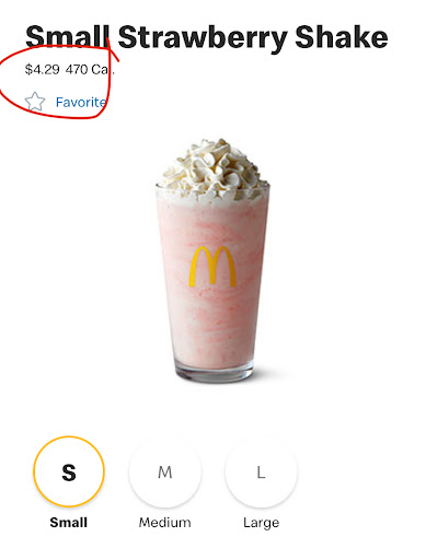 Yesterday I ordered a small Strawberry shake with my meal (an additional 2 dollars for the upgrade) but they didn’t have ice cream.