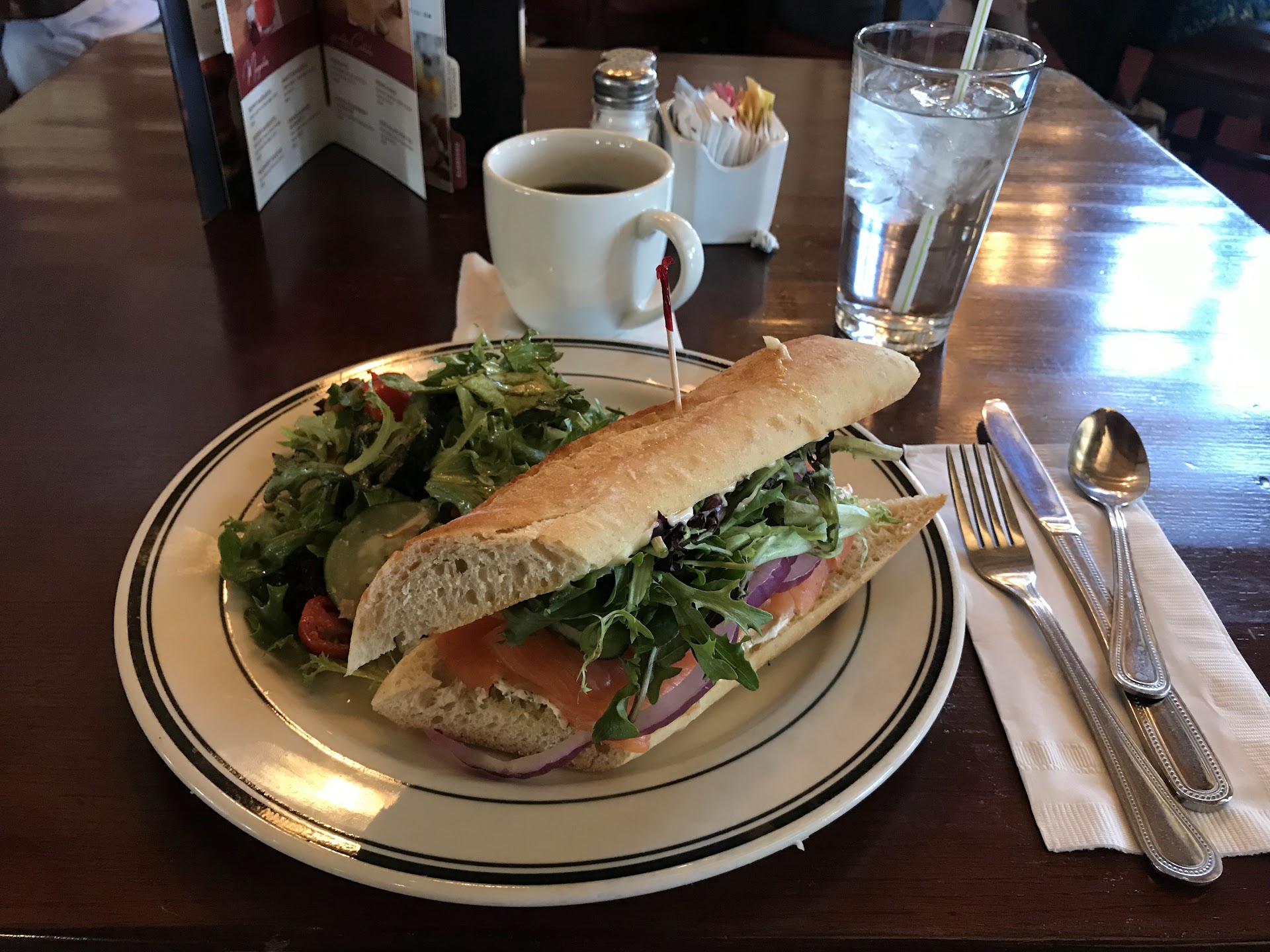 When I think of Eggs Benedict, it has three important hallmarks. Gooey poached eggs, a creamy hollandaise sauce, and a toasted English muffin. The egg was a bit over poached, but still had a gooey center. The sauce was a bit thick, over cooked but still had good flavor. The surprise was the English muffin. Too often they're hard, to compensate for the sauce and yolk that you'll get from the eggs. Nope. Soft and delicious. The salmon was good quality and capers were a good salty counterpoint, and kept everything from being just a bit too bland. Poor seasoning, overall. And a bit off on execution - 4/5. But I can see the seasoning choice with an older crowd who worry about their salt intake.