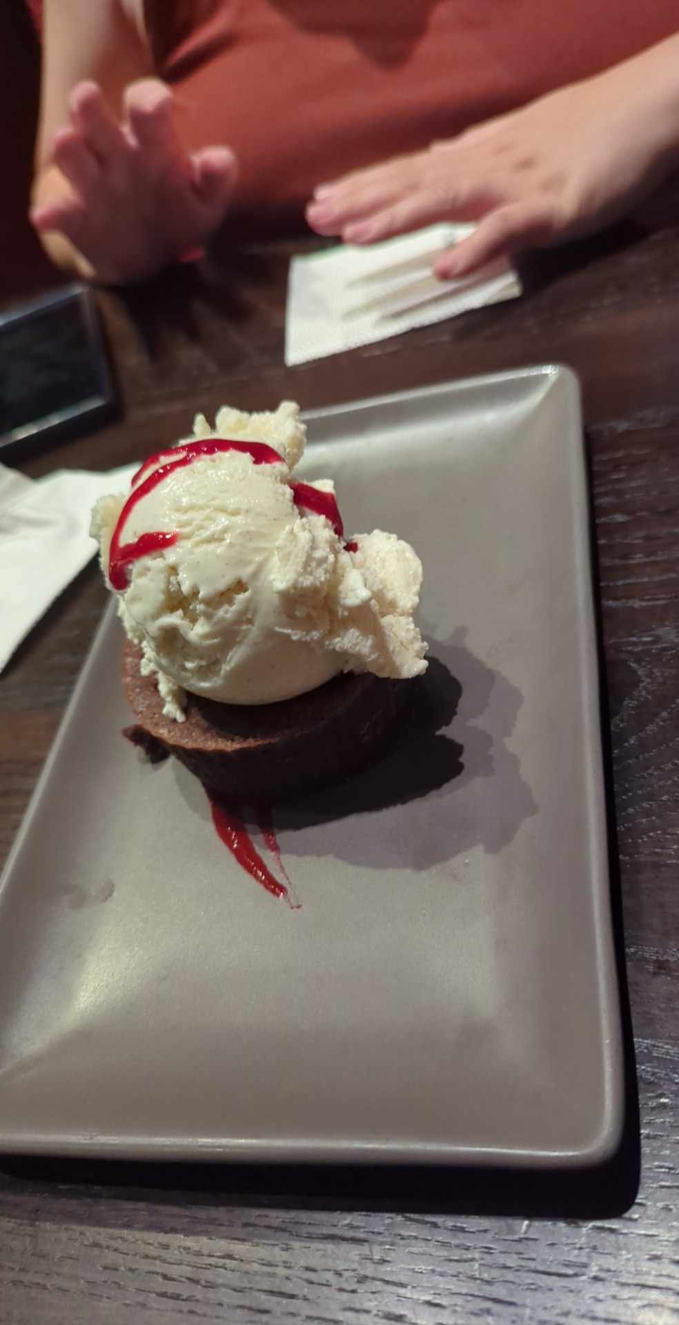 Again, our waitress barely notices us. She could not care less that we are there. She could not care less about our experience. Like I said before, I had scouted the menu, I knew I wanted that chocolate cake. However, the food and service were such a let down ..I thought "should i even get dessert?" Well the waitress stops by to drop the check and she says "just pay on your phone" and walks away. While paying she goes "yeah next time get dessert." She probably should have asked if I was interested before paying? I am glad I didn't get it. What a let down.