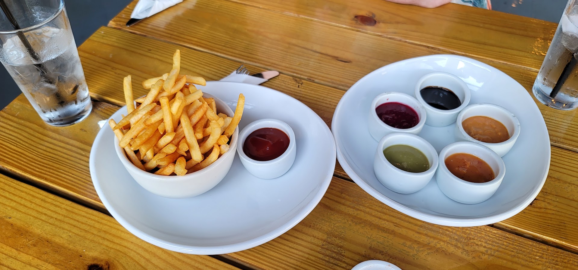 This was not our first visit. We have made a point of stopping here once or twice each time we are in the Phoenix area (in January, February or March) since they opened. The visit did not meet expectations we had from past visits (January 2023 & March 2024) and this visit was slightly disappointing. We walked in during happy hour, and it was quiet. There was one other couple at the bar. We sat outside on the patio. The view of the pond is so relaxing and is always my favorite spot to sit. We used the QR code to check out the beer options and put in our orders with the bartender. The beer choices were pretty limited and when we asked we were told they were no longer brewing their own beer. Our top favorites from past visits were not available and despite realizing taps typically rotate, there are usually a few house beers that aren't seasonal... Ihad the peanut butter porter which was good, very peanut buttery, and my husband had the amber lager, which he said was OK. He is a Pilsner guy, so it was a change for him Neither were Patent 139 brews.