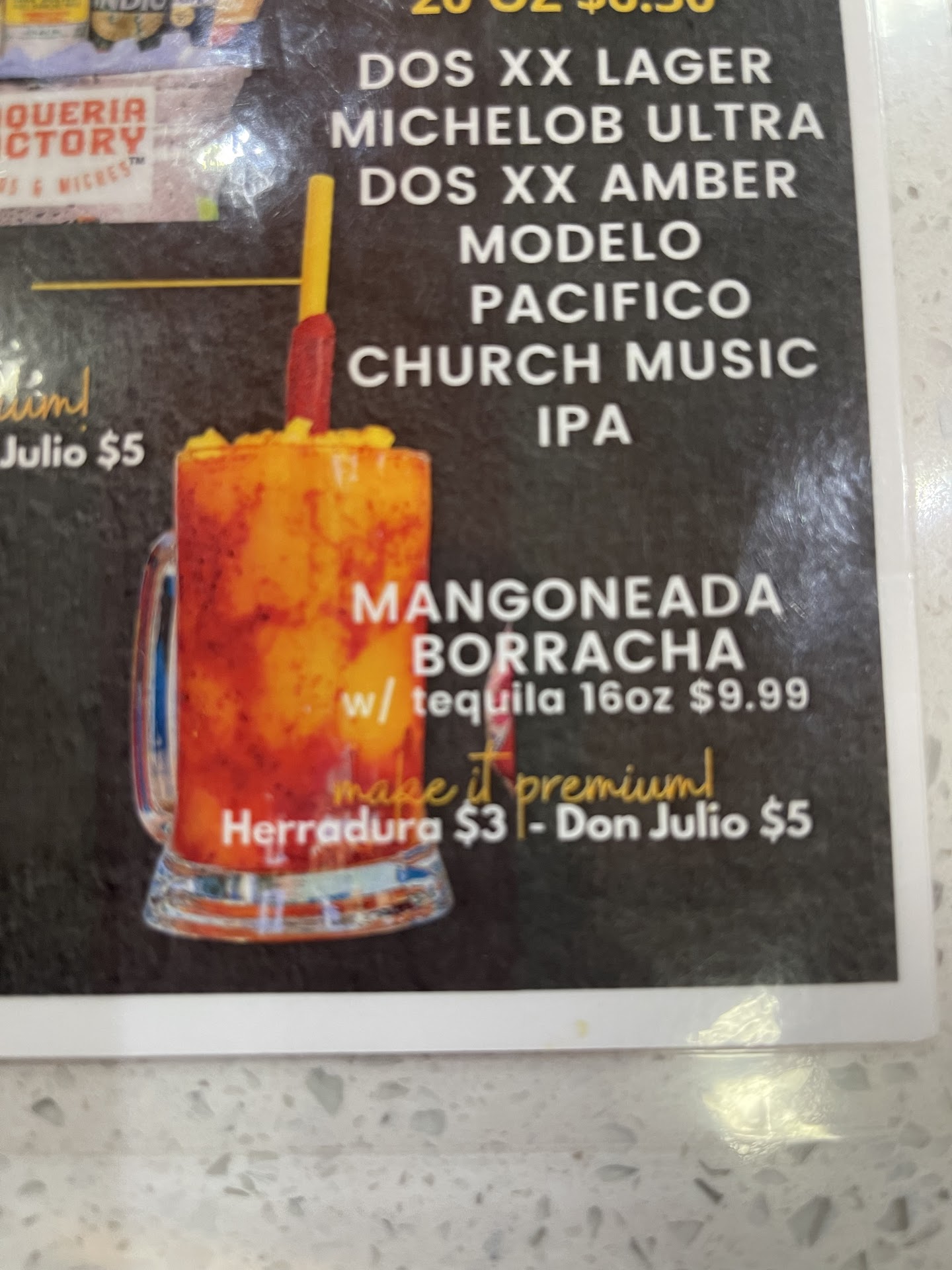 The chicken tacos were just under $5 each. The meat was in small chunks, burned, and had been cooked hours earlier. Absolutely disgusting excuse for a cooked meal. The 8oz refried beans were a clump of disgusting beans that offered no relief from the foul tacos. The only good was the beer to wash away the taste. Even the woman that took our order could not project her voice to be heard above the loud music. Overall, an experience I will not repeat or recommend.
