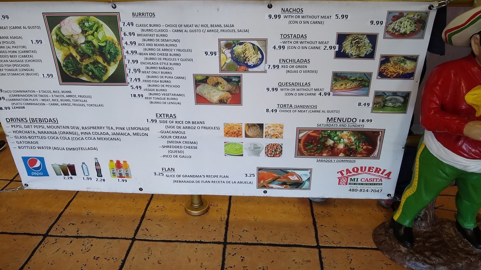 The staff were very friendly! They greeted us when we came in and we got to experience them cleaning everything! Which was cool because i usually worry about hygiene practices with food. I saw them all wearing gloves and being careful handling food. It took a bit longer to get our food, but that was okay. My husband ordered a carne asada burrito with everything and i ordered a carne asada quesadilla with everything. Now the food... it looks bomb!! My husband and i were so excited to have authentic mexican food. When we started eating, my husband started to experience many fatty/chewy bits that we feel couldve been cut out. There were many bits of meat that were overcooked and some even burnt! Lol he couldnt finish his burrito as it was also too soggy and he didnt like the bland rice. He ate a good portion of it though! My quesadilla also had a ton of chewy fatty bits and burnt meat bits. Its a strange experience when you're spitting out meat for being too chewy and too burnt lol. Some meat pieces were good! The meat at least had a good flavor when i could get a good bite. I guess it is authentic mexican food in the sense that i felt like my drunk mexican dad was cooking carne asada haha. Also the salsa wasnt spicy and the "horchata" is not homemade. It is dispensed from a machine and it tastes highly syrupy and artificial. The "agua de melon" was worse. It really is a charming little place though, so maybe we will be back to try other menu items like menudo! Hopefully we will experience...