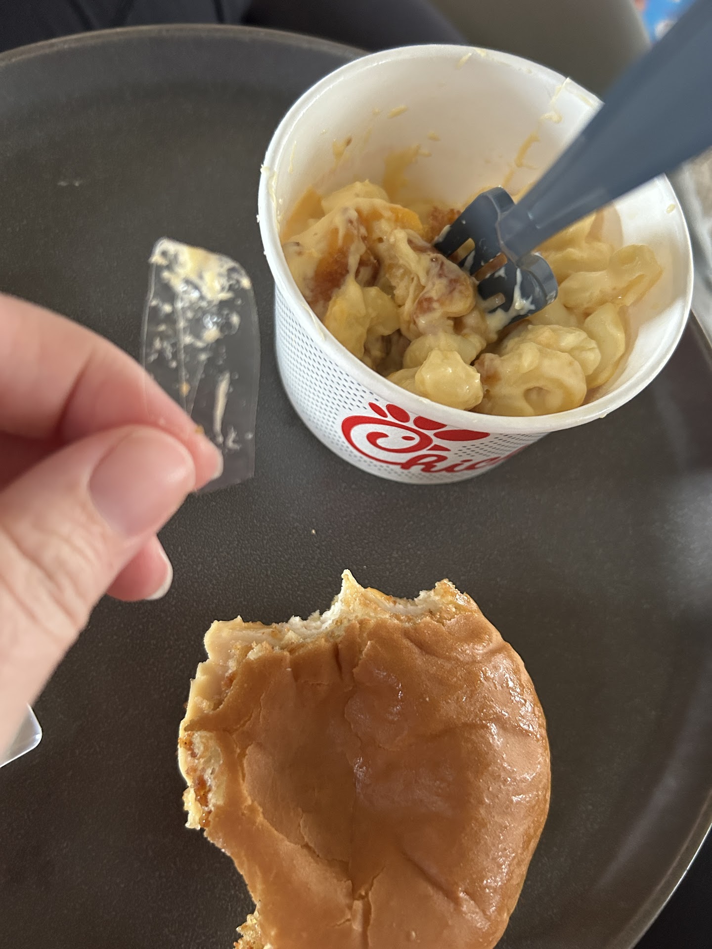 I canāt even count how many times Iāve eaten here since it has opened. Iāve always had a good experience, hence why I keep coming back. Last week I placed an order to go (I live about 30 mins from this location). When I got home I was eating the food with my one year old daughter. I ended up finding this piece of plastic in the Mac and cheese that I was sharing with her. I didnāt even see it and found it while eating it because I felt the texture was off and spit it out. I donāt even want to think about what could have happened if my daughter swallowed this. Since I was at home (and 30 mins from the restaurant) I sent them a message on Facebook letting them know. After a few days without a response I emailed their email address. A few days later I got an email back from the franchise owner apologizing and saying they would look into. Which is greatā¦but I was expecting a little more as chick fil a is known for their high ranking customer service. I think I should have at least be offered to have my meal comped for what happened. I understand that mistakes can happen but it doesnāt seem like they put in any effort to try and make this right. This is disappointing as Iāve spent hundreds of dollars here over the last few years by dining in, carrying out, and placing multiple catering orders. I plan on frequenting a different...