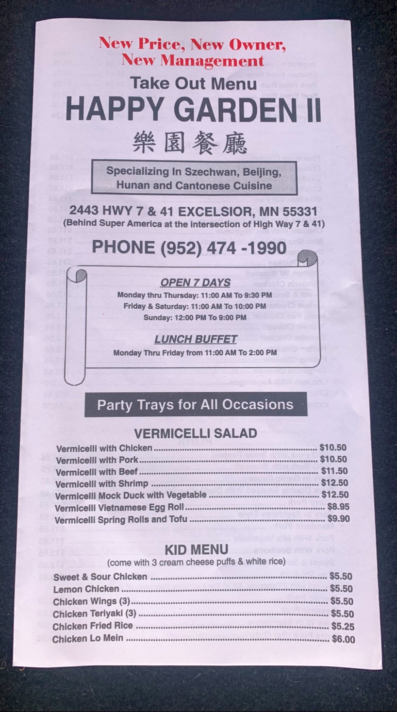 Ā Ā Ā Read moreWe have been loyal customer for years now. The food was excellent when Sam the old owner ran it. We have gotten take out from time to time and we always get the same stuff which is the Tangerine Chicken , Beef lo main , & Sweet & Sour Shrimp. The Beef lo main has always been done right & it has a really good flavor & you get ALOT for your money ! But it is a hit & miss when it comes down to the Tangerine Chicken the chicken is either done perfect or really dried out & way over cooked & very rubbery & the same goes for the Sweet & Sour Shrimp it's either done perfect or deep fried way to long . We just ate this on Friday & for the most part it was really good but once again the Tangerine Chicken would of been good BUT they BURNT the orange sauce or did something very different to it ! which really ruined the chicken . The staff is very nice & friendly & there take out time has always been around 10 to 15 mins that's fast enough for me. But we WISH for the old owner to buy it back someday ! Then I would of rated...
