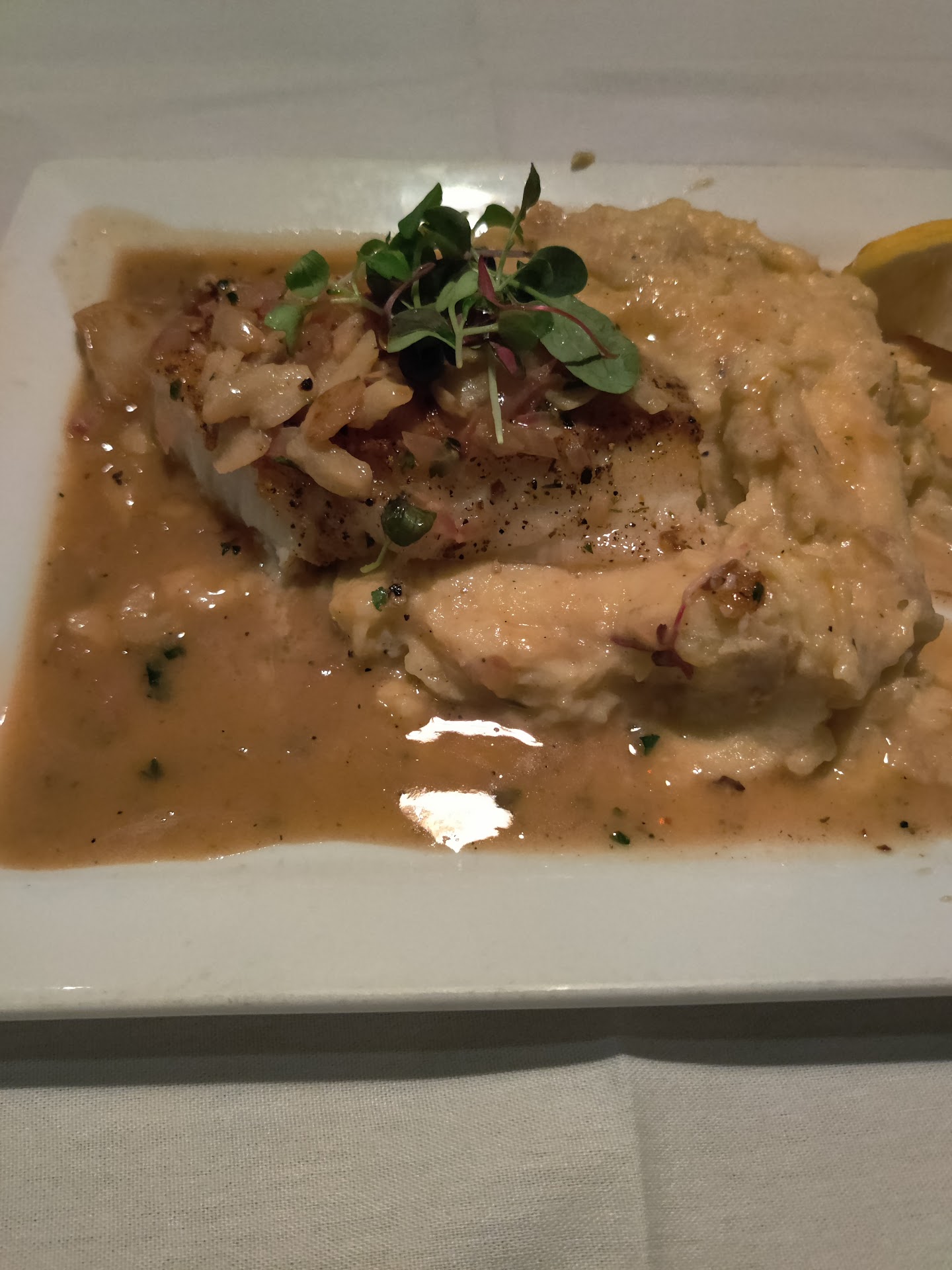 It was stuffed heavily in the center, but somehow cooked evenly the whole way through. The skin was crispy, meat was cooked just enough, and the sides paired quite nicely. I do think the potatoes were a little drier than I would have liked, but not enough to really be noticed.