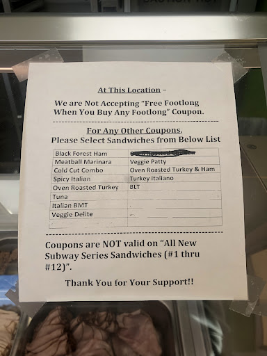 Oct 2022. Not recommended. While it appeared clean, it should have, as it was empty at dinner time, big sign of things going wrong. Not at all friendly, welcoming or grateful for business. This location does not honor most Subway coupons & limits which few sandwiches that those couple of accepted coupons can be used for (photo proof attached). This location is not even using all Subway meats (photo proof attached of paper thin store bought deli slices literally still in the shape of the tubs they likely came in & were dumped from, plus I actually worked for Subway, so I know). Also such extremely skimpy amounts of that non Subway meat & cheese + tiniest sprinkles of all other veggies placed on sandwiches. None were remotely close to what we receive when we go to other locations. Even the foot longs were hardly filling for my children and barely worth the coupon amount paid. Never would these have been worth full price nor substantial for an adult appetite. Not the first time we’ve had sub par service and food here, but we are limited in this small town & thought we’d try again. Not going to give them or continued business. Summary - Skip this location and go to another Subway to be treated kindly, politely, fairly and properly given amounts equal to what...
