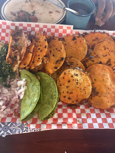 My husband and I made the trip yesterday evening for late lunch/early dinner (around 4pm). I saw a post on TikTok from a creator who said the food was good and they also have a family farm (only a few minutes away) where you can visit as well. We did not get to visit the farm yesterday, but do want to return again to visit! We ordered 3 alcoholic beverages total (beer-Rita, cardi B colada, blue fish w/ mezcal); they were around $12-$15 each. I personally liked all 3, my husband only liked his. We ordered the big platter of Birria (beef) which came with tacos, green tacos (just a green tortilla), and mini/regular quesadillas. We got a good amount of consommé (a cup each) as well as toppings (cilantro/onion/lime). We also enjoyed the free chips/salsa and ordered a small side of queso as well. Both my husband and I really enjoyed the salsa and the chips.