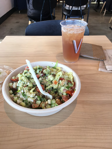 Food is good, newish clean friendly environment. I've subtracted a star for inconsistent employees behind the counter. Not offering me pita bread and having to wait at the end of the line like every time, rushed a bit through the process, always in such a rush when I have a question because I'm mindful about my food, I understand there is a line and I do not waste time on my order, although time to time I have a question on what is what. The new honey harissa chicken is great, the craft sodas are usually stocked and taste great. Tables clean and floors appear clean.