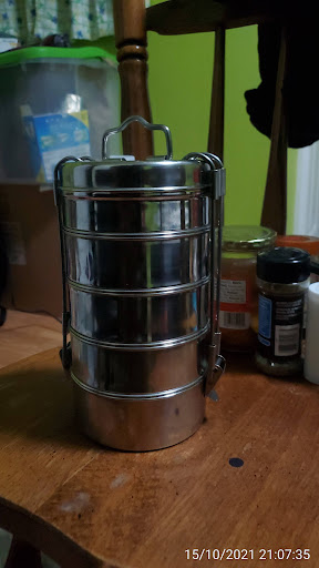 But now, I'm really happy that I tried the Tiffin Dabba system. I started dining in at restaurants despite Covid, because almost all of the Indian restaurants stuff scaldingly hot food directly into cheap plastic boxes. I was really concerned. Didn't have a choice.