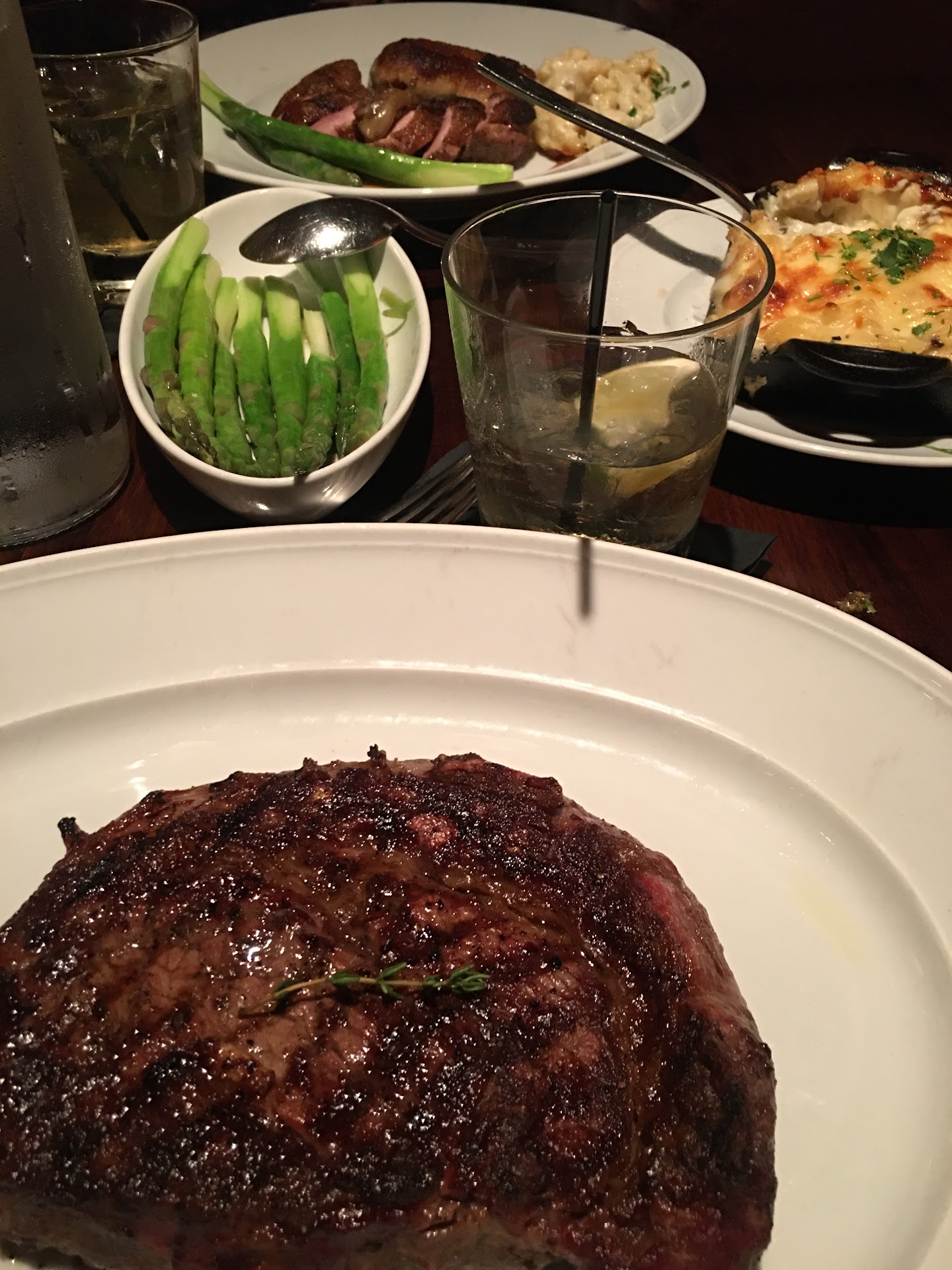 $80 bone-in ribeye. Cooked to my requested temperature. The issue is someone really thought that the natural flavor of the meat and the side sauce is enough. BLAND! Because it's a thick slice of meat and how it was prepared, adding salt after the fact didn't make it easier to eat. It was very disheartening to literally see my money on the plate and no matter what I tried to do- I couldn't eat it.