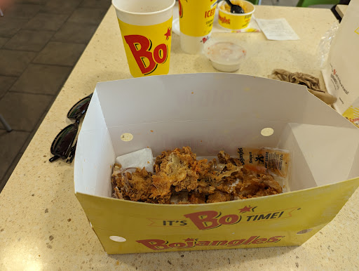 Read moreWe were on the campus visiting the school to see if my daughter wants to attend next year. We live in Orion and I'm from North Carolina so I've even Bojangles all my life and decided to get some Bojangles while we were there. First, this store does not have Cajun pintos so if you want Cajun pintos you should go to a different Bojangles. The best parts of the Bojangles chicken are the legs. So I ordered the three-piece dinner with specifically says on the menu cuz you get two thighs and a leg I think. And I got a breast one big thigh and one little thing that was so small. I couldn't barely tell it was a thigh. My lady ordered the same thing and her food took about a half an hour to come out and we actually had finished eating all of our food because they gave her the wrong pieces of chicken and I should have gone back and got mine corrected too but I was hungry so I ate what they gave me. My daughter's mom was also with us and she ordered the three wing dinner and ended up getting three completely different pieces of chicken. I think maybe that was one wing in there and she just said forget it and ate it too. And the breading on the chicken was too much breading and not enough chicken. Look at the picture that I posted of how much breading that was left. I know people like the crust but I like meat. So unless you're desperate for Bojangles, I would probably go eat at one...