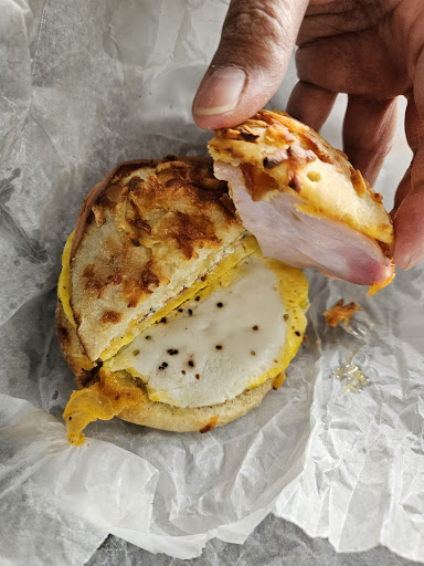 This used to be the go-to spot for quality breakfast bagel sandwiches but it seems to have fallen in recent years. I've been a long-time customer, even back when they still had the Bruegger's Choice sandwich but my girl and I will probably never return - at least at this particular location. When we went around 8AM on a Saturday, there wasn't a big line but it took longer than expected to complete our order because there were only 3 employees (2 in front, 1 in the back). But that's not even the first disappointing thing. When we asked to order 2 Westerns with extra egg each and the cheesy hashbrowns, the sandwichmaker said that they're sold out of the hashbrowns. That's basic breakfast staple and it's out...or maybe they just don't want to make it because of understaffing issue. While the line wasn't so long when we were on the line it got longer while we were eating inside. So long to the point the line reached outside of the building. The lady at the cashier told the customers, "There's only 3 of us here, so bare with us." twice, which is just unprofessional customer service and bad management. The hazelnut coffee was good - we ordered a couple of Medium-sized, but the coffee ran out and we didn't bother to ask because the employees were so busy, struggling to serve the long line of customers.
