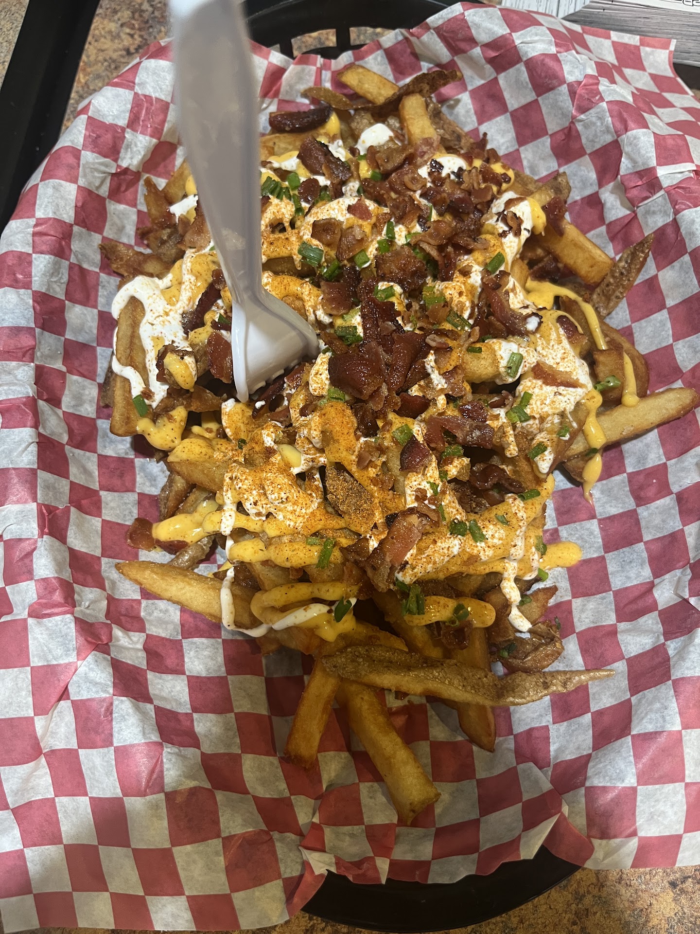 The fries were pretty good until I realized most of them were just the little bits of fries, you know, sort of hard to eat that way..