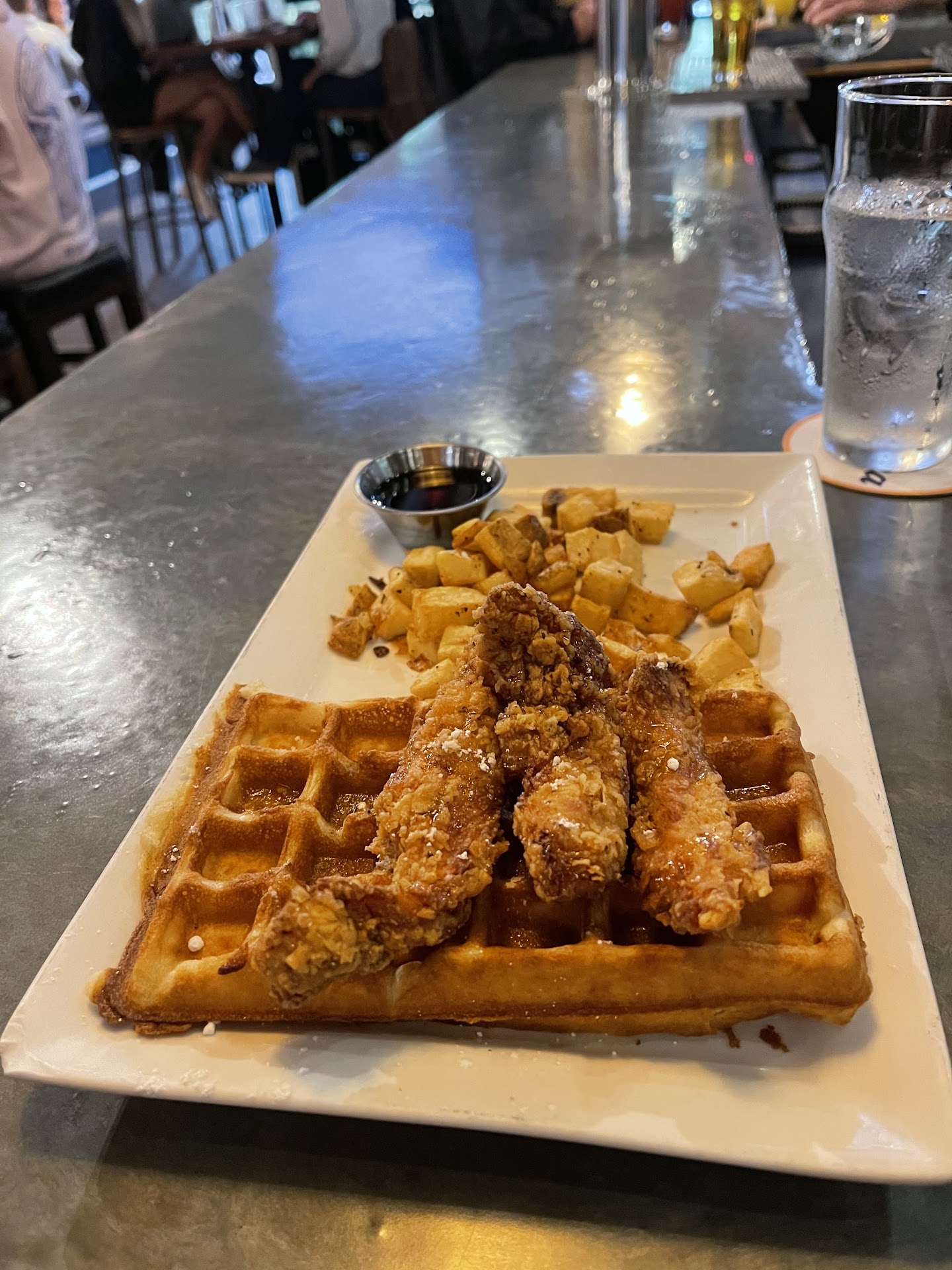 Overall, This is a good place to eat. It's right off Franklin and has a stellar bar, indoor and outdoor seating, plus a lot of TVs to watch sports on or whatever else. When it gets busy the wait can be a lot but if you get reservations that makes it pretty fast. Chicken shortages seem to be hitting them but they honestly do make up for it with the breading. I would eat here again and even bring my family. It's a very nice establishment filled with college and high...